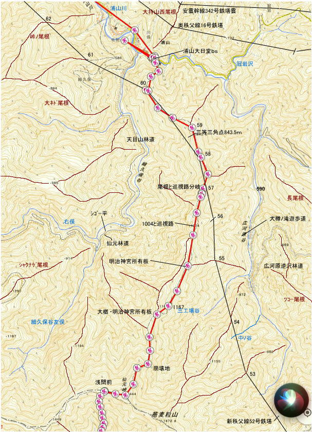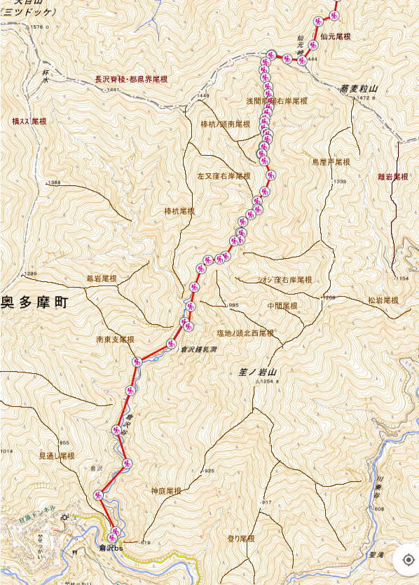 長沢脊稜・・仙元峠 6年振りに倉沢谷右俣から長尾谷右岸歩道を経て. 左又窪・浅間前窪の中間尾根・浅間前ノ窪右岸尾根から仙元峠を越え.再び仙元尾根を下る。浦山大日堂. ![]() 天目背稜仙元尾根ルート図 巻道のほか頂稜に踏み跡あり.2021.11.06地形図「武蔵日原」.zzz96倉沢谷上部二俣・奥多摩詳細図.東編・1004mコブと広川原・・シリオブーツ.21633歩 前回の山行は前半2009年12月29日に冬枯れの真名井沢北稜の末端から新秩父線の鉄塔尾根を歩み.蕎麦粒山まで入り一度中断し. 桂谷枝沢から林道.川乗林道,日原街道を経てjr奥多摩駅へ下りている。そして新秩父線の鉄塔尾根を繋ぐ後半として翌年の1月23日に.裸林に 被われた登り尾・鳥屋戸尾根から長沢脊稜の由緒ある仙元峠に立ち.仙元尾根から送電線を追い秩父浦山に下りている。 |