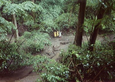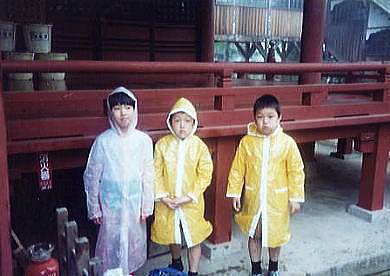 | 雨に始り雨に終わった高尾山 三筋一御徒町=京王新宿=高尾山口.登ケ一1号路.男坂一高尾山一琵琶滝コース(森と水コース)一京王高尾口=新宿. s59年(1984年)06月03日雨. 私.真佐子5(歳)隆史.博史(4歳) 三鷹付近より雨が降り始め.高尾山では小雨と濃霧の舞う中を登っている。 色取りどりの小さなポンチョが踊っていた。 ロープウェーで登り.下りは前ノ沢沿いのびわ滝コースを下る。雨の中.黙々歩き山道は川となり.悲惨な状況に。 里に近ずいてから沢カニを獲り京王高尾駅へと。 山頂で数パーティに会っただけだったが.子供達はすこぶる元気。 薬王院御本社で雨宿り.結飯放ばる博史 森の小人達前ノ沢→案内川(カジカ蛙.繁殖地)→南浅川→多摩川 |