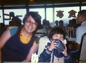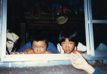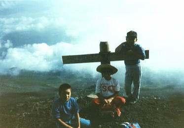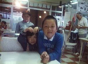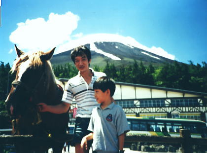 西湖いやしの里根場より.2014.09.30中央が青木ケ原.左奥が河口湖 夏富士T家族の登頂記 初めての夏富士・・一度目は天候に左右され大敗してしまったが.年を掛け家族全員登頂する s59年(1984年)7月20〜21日,河口湖口.8合7尺で撤退. 私.妻.真佐子8歳.隆史.博史7歳.俊雄3歳 スバルライン5合目 水は有料 5合目レストラン内で妻と俊雄 |