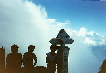 | 子供達 よく寝.良く食べたせいか八合目は長かったが.アッと言う間に着く。八合八尺で一本取った。 全員すこぶる元気。 子供がザックから出した菓子袋はどれもが気圧が薄く大きく膨らんでいた。 自分で詰めた間食を見て.驚き笑いだす子供達。 そこに自衛隊の野営登山班と出隅した。休んで間食を摂っていると「良いな!」と声が掛かる。 又.子供にも「頑張って!」とも。子供達は元気に「はい。」と返事を返していた。我ながら嬉しいひとことだった。 8合目8尺からが長かった |