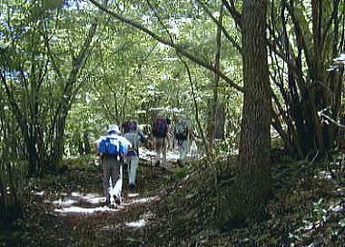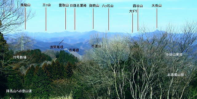 | 家族で春の高原を散策する。国鉄よりJRの分割民営化・・jr東日本 s62年(1987年)05月04日高曇. 家族全員 三筋6:13一6:30jr御徒町=6:59新宿=8:00京王八王子bs:29=9:22陣馬高原下bs 陣馬高原下bs一11:15陣馬山.昼食ラーメン12:25一奈良子峠から奈良子尾根一栃谷坂沢林道一13:50板谷川.陣渓園16:10 一落合(陣馬登山口)bs16:40神奈中バス(津久井神奈交バス)=jr藤野17:33.臨時快速=神田=御徒町一19:05竹町. 俊雄.陣渓園まで19350歩. 今回は家族全員での行動. 京王八王子にでて.路線バスで陣馬高原下まで入り.陣馬高原へピクニックに出向く。 晩春の高原は陽射しが踊り清々しく又暑い。草原では元気に走り回る子供達とシートを広げての食事。 下山は奈良子峠から奈良子尾根を下り陣馬登山口バス停に至るコースを選ぶ。 急傾斜だが短い奈良子尾根を下り.栃谷底沢林道を一度横切って.栃谷川(吉野沢)沿いに降ると陣馬の湯「陣渓園」にでる。 日帰り風呂に入浴し寛いだ後.落合バス停からjr藤野にでている。 春うららかな陽差しと陣馬高原富士山を始め丹沢.秩父.奥多摩.相模湖を一望する 栃谷坂沢林道 奈良子尾根から板谷川沿いに下山板谷川→沢井川→相模湖 奈良子峠 奈良子峠は藤野の落合から八王子へでる古い峠路。峠の由来は藤野町教育委員会「ふじ之町の古道」によると栃谷川と吉野沢の間の尾根道に 大きな楢の木があり.通行でよく休む場所でもあり.楢の大木から名付けられたと説くものもある。 又奈良子とは大和の奈良.吉野に由来しているとも考えられていた。 奈良子峠の西の小コブには「馬牛」を頭に入れた「観世音菩薩」の石塔があり.観音とは衆生の苦難を救うため.さまざまな姿で出現する仏。 「馬牛」の表示は家畜にも及んでいる。 そのなかに馬頭観音の石塔が立てられていた。峠道に倒れていた古い案内には「明治から大正にかけて.栃谷の人たちは馬に炭俵を背負わせ. 栃谷の集落から奈良子峠を越えて八王子まで.奈良子峠を越え八王子に運んだ」と云うことが書かれていた。 「陣渓園」にて陣馬の湯 陣馬の麓.沢井川左岸の支流の栃谷川右岸の渓流畔に「陣馬の湯」と呼ばれ.「陣谷温泉」.「陣渓園」.「姫谷」と3つのアルカリ性単純泉の宿。 泉質は無色透明.無味無臭で全く癖のない冷鉱泉。沸かし湯. 子供のひとこと 真佐子. けむかった。(砂) 隆史. 下りのときがたのしかった。 博史. 上りが少しきつかった。 俊雄. たのしかった。 jr東日本 日本国有鉄道(国鉄)の財政破綻は1987年04月01日.JRとしてして6つの地域別の旅客鉄道会社 (JR東日本.JR東海.JR西日本.JR北海道.JR四国.JR九州)と1つの貨物鉄道会社(JR貨物)に分割.民営化された。 陣馬山高原下=八王子間.多摩バス路線は廃止。2006年09月01日に陣馬高原下=高尾駅北口間が新設される。 陣馬山,高尾山Top 三頭山笹尾根を繋ぐ・・三頭山笹尾根.上半・下半地形図 多摩川秋川南秋川と相模川鶴川の分水嶺を成す.三頭山から延びる長大な尾根・・末端は高尾山 奥多摩三頭山笹尾根の幾つもの由緒ある峠を訪れる 三頭山笹尾根 2008年02月. 笹尾根T.京王高尾山駅―(高尾山―陣馬山―醍醐丸―三国峠)―軍刀利神社奥ノ院.社務所―井戸bs 2008年03月. 笹尾根U.桧原都民の森bs―(三頭山―上平峠)―笹ケ峠ノ峰―大羽根山東尾根―森沢林道―桧原街道,笛吹―出畑先 2008年04月. 笹尾根V.温泉センター前bs⇔南集落.―948m点尾根―(上平峠―熊倉山―三国峠)―佐野川峠―石楯尾神社前bs 2016年02月. 数馬bsから都民の森.三頭ノ大滝.ムシカリ峠を経て三頭山笹尾根―槇寄山から西原峠を経て南面の里,郷原・・阿寺沢入口bs 2018年09月. ハチザス沢と三頭沢との中間尾根から日陰三頭ノ沢を横断―大沢山東尾根を越え三頭山玉川を下降・・峰谷橋bs 笹尾根を縦断・・陣馬山・高尾山周辺 2011年02月. 新玉川橋bsから入小沢ノ峰シンナシ尾根,糖指尾根―三頭山牛飼尾根・・長作から街道を阿寺沢入口bsへ 2011年02月. 井戸bsから熊倉山南西尾根(省武連指尾根)―雪残るトヤド浅間北東尾根・・京岳bs 2012年08月. 藤野佐野川bsから鎌沢尾根―鶏冠尾根.連行峰からは万六ノ頭南東尾根・・笹平bs 2014年02月. 豪雪の旧甲州街道・・小仏bsから小仏峠を経て城山―大垂水峠から南高尾山稜,大戸・・町田街道=jr高尾 2014年03月. 和田bsから草木尾根―鶏冠尾根.醍醐丸を越え臼杵山グミ尾根.荷田子峠・・荷田子bs 2016年09月. 数馬bsからハチザス沢と三頭沢との中間尾根.石原小屋窪右岸尾根―ハチザス沢ノ頭から大沢山大茅尾根を直接.飯尾に下る 2019年12月. 森沢橋bsから森沢700m圏出合右岸尾根・丸山南尾根・西原古道・アッチ沢右岸尾根・南沢中間尾根・数馬のノ湯bs・・日没と競争 2020年01月. 鶴川.久野本bsから丸山を経て土俵岳南尾根―北尾根から大伐採地と南秋川を渡渉し人里bs・・古道.廃破線路.丹田沢林道 三頭山笹尾根T・・高尾山稲荷尾根〜三国峠 三頭山笹尾根U・・三頭山〜笹ヶタワ峰と上平峠(数馬峠) 三頭山笹尾根V・・上平峠〜三国峠 高尾山から陣馬高尾縦走路から武甲国境尾根を三頭山の頂まで2回の日帰りに分けて繋ぎ.地形.概念を掴む予定で