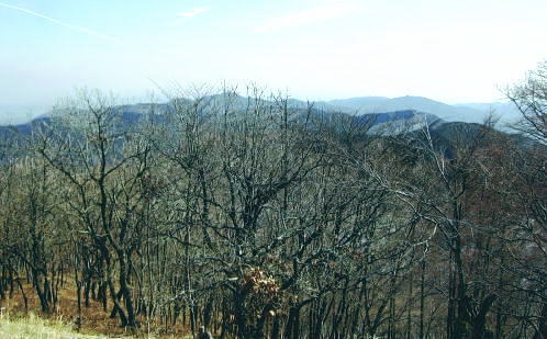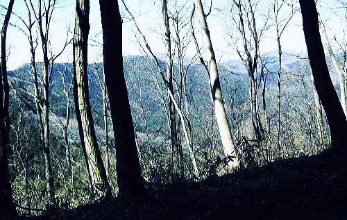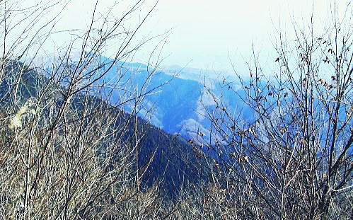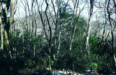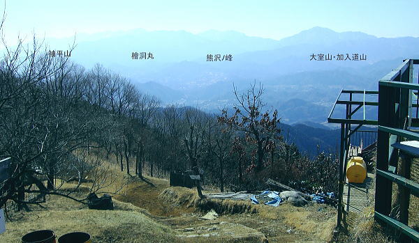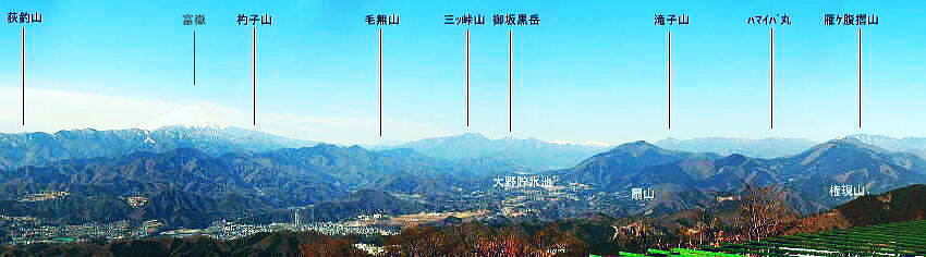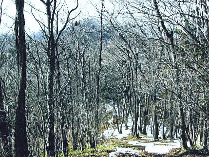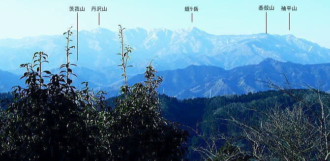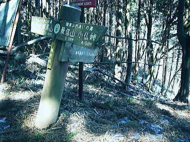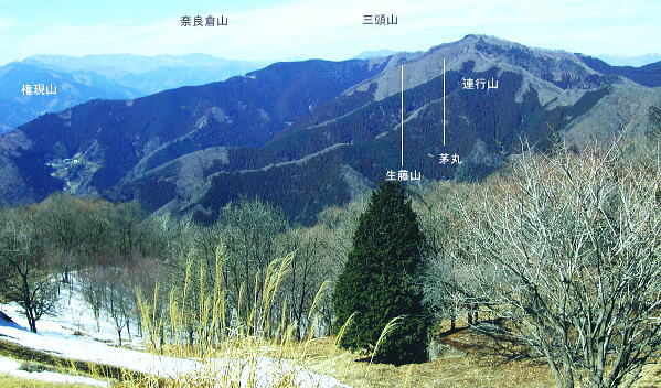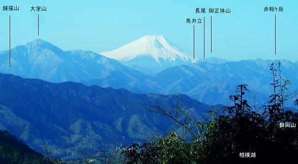 醍醐丸と連行峰のほぼ中間に大蔵里山837mの峰がある。ここから南方へ和田に没する尾根が大蔵里尾根と呼び.山径が綴られている。 蔵里は焼畑を意味するらしい。その先連行峰の東寄りコブ920mには鎌沢地区から突き上げる鎌沢尾根が延びていた。 又その東方には草木地区.和田から草木尾根が並行し.後に猛暑と大雪との係りで何度か入山を繰り返すことになる。 市道山 小坂志川を隔て主尾根より.14:30再び巻き道から尾根にでて.時折南秋川側方面から谷風が吹き抜けた。 雪面から撫で上がる風に肌寒さを感じ.そこを抜ければ又柔らかい陽差に恵まれた。長袖を捲くっては降ろし.手袋が欲しくなる。 手袋は裏高尾に入り.付ける積りだったがザックから出すのが億劫で.まだ出さずじまい。既に6時間が経っている。 ポケットに手を突っ込んでは登り.ベルトに手を掴んでは喘ぐ不精な登行が続いている。 生籐山 柔らかい陽差しに春雪残る尾根筋.14:34笹尾根と呼ばれるこの尾根も,殆ど熊笹の群生は認められなかった。暖かくなれば茂るだろう笹尾根は今はその種さえ見られずにいる。 雪疎らな径となり連行峰にでる。尾根上の残り雪が溶けた場所にはドングリが転がる径が続く。 山々の頂で繋がらなかった携帯電話。灌木の茂みの笹尾根で.ベルが鳴る。妻より連絡あり.ザックの中から鳴り響く電話。 「隣りの奥さんが亡くなった。」 「下山はと?」。 生籐山まで進み下ることになる。 茅丸と連行峰 生籐山々頂から振り返る.14:58茅丸1019m・藤野町十五名山.展望はないが頂に2つのベンチがあった。 生籐山 短い上りに喘ぎ.登ると平坦となり又登る。生籐山(しょうとうさん)の手前では既に陽は幾らか西へ斜陽し始めていた。 3時.急にゴツゴツした岩稜を少し登ると待望の生籐山の頂に立つ。小さな突起ある山が生籐山と三国山。 広くない平頂だがベンチがあり.二等三角点標石があった。視界は三国山を含め枝藪枝に遮られている。 和田峠からの道中は冬木林が続くが展望はずっと見られなかった。霞む樹間から漸く望めた陣馬山.思いのほか遠きに望められている。 生籐山(せいとうさん)は「きっと山」と呼ぶのが正しいと言う説がある。 又「きっと山」の山名は境界をはっきりするために木々を伐採しない「切り止め」があったとも。国国境のため「切り止め山」と呼ばれ.. それが転訛し.その発音に対し生籐の字が当てられ.山の名になったといわれている。 陣馬山一ノ尾根ノ尾根 生籐山より振り返る.15:08南東方面・・相模湖へ注ぐ沢井川を隔てる生籐山 写真の陣馬山からの尾根は栃谷川出合と沢井川との合流点の末端は没している。昔家族で.この尾根の裏側の陣渓園に出向き. 山の湯を愉しんでいた。沢井川沿うには陣馬街道(案下街道)が通り.和田峠越えをして案下川沿いに下っている。 その途中に陣馬高原下のバス停があった。当時は4月1日に日本国有鉄道(国鉄)は財政破綻を起こし. JRとしてして6つの地域別の旅客鉄道会社に分離され発足され.JRとして乗車していた。 権現山稜・・雨降山・権現山・大寺山 三国山より西方の権現山稜を望む.15:09熊倉山南西尾根と大菩薩嶺牛寝通り尾根末端.2008.12 左上が霞む扇山. 中央左が三本松.直ぐ右上が雨降山と権現山北尾根.2011.01 右奥が三森からの葛野川左岸尾根で大寺山を経て奈良倉山へ.2009.11 手前が黒田川で鶴川に注ぐ.熊倉山南西尾根が没している.2011.02 三国山の南尾根より熊倉山南西尾根 三国山より北西側.15:10生籐山と三国山 奥多摩三頭山笹尾根は何処までが.この名称で呼ばれているか判らぬが.生籐山は三頭山から続く高尾山との丁度真中あたり. 神奈川県境最北端に位置している。 並ぶ三国山(三国峠)は甲斐.相模.武蔵三国の境をなし.頂にはテーブルにベンチがあり.直ぐ西側には上野原と五日市を結ぶ三国峠がある。 日本武尊の東征の言い伝えが残る古い峠で.黒田川沿いの裾には日本武尊が祀られてをり軍刃利神社が建立されている。 又三国峠から反対側の北側のツメ沢は何故か軍刃利沢と名付けられ南秋川へ落ちている。 三国峠の呼び名は「新編相模国風土記」には三国峠として.「甲斐国志」には三国山として記されている。 又1/2万5千地形図「五日市」には三国峠と記されていた。・・三頭山笹尾根.上半〜三国山
