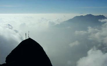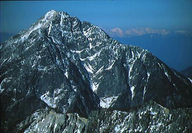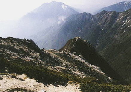 鳳凰三山観音岳より右が地蔵岳.奥はアサヨ峰と甲斐駒ヶ岳.間の遠方はは見えるか乗鞍岳 . ![]() |