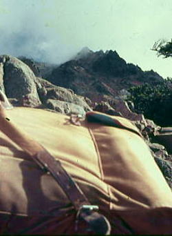 地蔵尾根のツメ,横岳.硫黄岳を仰ぐ |