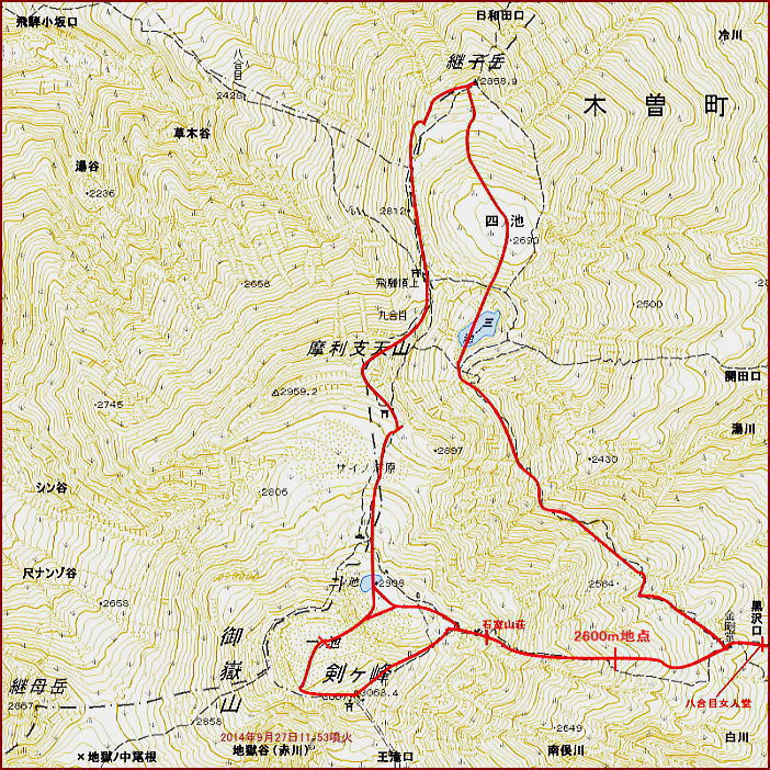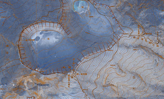 木曽御嶽山地形図と平成26年御岳山噴火