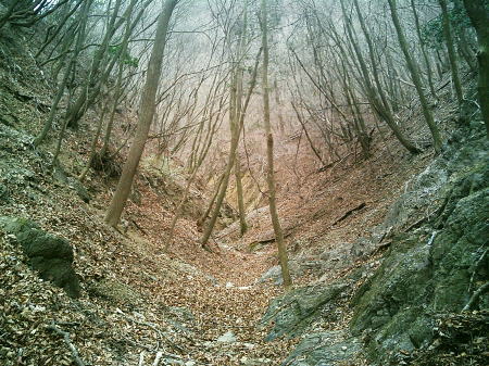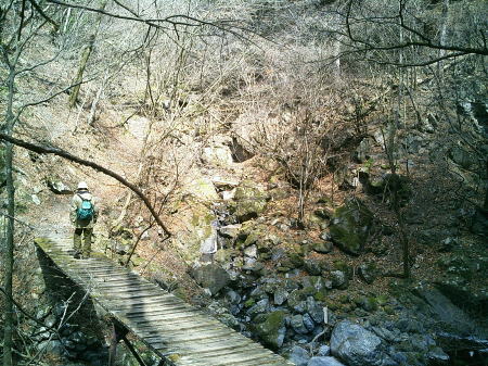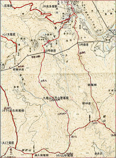 | ・・川苔山周辺絵図 都県界尾根Top 奥多摩.奥秩父東部概念図.山行表 川苔山東南面の山々 川苔山周辺 2007年03月. お彼岸の川乗谷百尋ノ滝から足毛岩肩を経て川苔山―舟井戸から大根ノ山ノ神を経てjr鳩の巣・・再び山へ初めての奥多摩 2016年03月. jr白丸から根岩越えして本仁田山―平石尾根.妙指尾根から向寺地にでてjr奥多摩駅 2025年09月. jr奥多摩―屏風岩尾根―権指尾根―花折戸尾根―本仁田山―大休場尾根―安寺沢―除ケ野の黒線―町立小学校裏―jr奥多摩 2025年10月. 大岳鍾乳洞入口からサルギ尾根を詰め上高岩山.中沢ノ頭から鍋割山北尾根に乗り大檜峠を越え.城山北尾根からjr鳩ノ巣 赤杭尾根 2016年10月. 大丹波川・雁掛林道から雁掛ノ峰を経て川苔山肩―鋸尾根を南下しウスバ林道.ウスバ尾根南面下段の旧経路から川乗林道 2019年10月. jr鳩ノ巣から峰歩道を経て入川谷を横切り.エビ小屋山南南西尾根―赤杭尾根から曲ケ谷沢を下り林道・県道‥清東橋bs 2020年07月. 清東橋bsから大丹波林道.44号鉄塔尾根を経て真名井沢ノ頭―赤杭尾根.赤杭山東尾根から越沢へ・・真名井林道・左岸道.上日向bs 2020年08月. jr川井駅を起点に蝉沢左岸尾根から峰三ノ戸山―頭窓山から570m圏南尾根を下り.崩壊地から鉄塔尾根の御伊勢山に立つ。 大丹波川右岸流域 2009年12月. 真名井沢ノ頭北尾根から蕎麦粒山―桂谷より桂谷林道.川乗林道と日原街道を経てjr奥多摩へ 2016年10月. 清東橋bsから大丹波・雁掛林道.曲り尾根.真名井北稜雁掛ノ頭―鋸尾根大ダワを経て.ウスバ尾根下段径路と林道・・川乗橋bs 2019年10月. jr鳩ノ巣から峰歩道を経て入川谷を横切りエビ小屋山南南西尾根―赤杭尾根から曲ケ谷沢を下り林道・県道‥清東橋bs 2020年07月. 清東橋bsから大丹波林道.44号鉄塔尾根を経て真名井沢ノ頭―赤杭尾根.赤杭山東尾根を下り真名井・熊沢林道・・上日向bs 2020年08月. jr川井駅を起点に蝉沢左岸尾根から峰三ノ戸山―頭窓山から570m圏南尾根を下り.崩壊地から鉄塔尾根の御伊勢山に立つ。 入沢谷・・入川谷流域絵図 2018年06月. jr古里駅から周回.古里附.入川林道を経てトキの倉骨.布滝―オキの倉骨から巡視路を経て旧峰集落・・林道終点に戻りjr古里 2018年07月. 杉ノ殿尾根末端から旧峰集落を経て入川谷―布滝沢径路からエビ小屋山南尾根.そして向ウ山を経て末端に至る・・林道起点から周遊 2019年08月. 入川谷布滝から峰歩道の作業道? 旧峰集落―大根山ノ神から杉ノ尾根を経て荏ノ久保山南尾根・・jr鳩ノ巣 2019年10月. jr鳩ノ巣から峰歩道を経て入川谷を横切りエビ小屋山南南西尾根―赤杭尾根から曲ケ谷沢を下り林道・県道‥清東橋bs 清里.清泉寮周辺の清掃ハイクが切っ掛けとなり.再び山登り始める。手軽な日帰りの東京近郊の山々へと。 初めての奥多摩.川苔山・・予備知識に地図も持たず.登った早春の独り旅 川乗谷林道から百尋の滝を尋ね.足毛岩分岐から川苔山―舟井戸.大根山ノ神コースからjr鳩ノ巣駅. 2007年03月21日.単独 再び山へ 清里・清泉寮の立教清掃ハイクが切っ掛けとなり.再び始めた山登り。まずは27年振りに子供達と歩んだ奥多摩に入る。 川苔山は高尾山と同様.名の知れ渡る山名から出掛ければ如何にかなるだろうと云う安易な考えは最初から甘かった。 地図を持たず.地形も分からぬ間々川苔山の名前だけで頂を目指している。又川苔山には高尾山と同様に売店があると思い込んでいた。 着いた川苔山の山頂は以外と閑散とし.寒風が寄りそえている。奥多摩三山の山名を教わり.道標に頼ねば登れぬ山だった。 翌月には地形図を購入し.川苔山の向かいに眺められた御前山に改めて出向いている。 8時前に青梅線奥多摩駅に到着するには列車の連絡が悪く.御徒町駅から3時間弱費やしている。新宿発7時44分「ホリデー号」に乗れば 2時間弱のアプローチ。本当に久し振りの1人旅. のんびり春の陽差しを浴びながら奥多摩の山を散策しとうと早めに出向いたのはよかった。 子供達と奥多摩にキャンプやハイキング.釣りにと出向いてから27年振りになる。今日は川苔山に登る。 03月21日.晴後曇 jr新宿.「快速おくたま1」7:44.¥1250=9:14奥多摩.西東京バス.¥250=川乗橋9:50一ウスバ尾根 一13:00川苔山13:45一舟井戸一大ダワ一大根山ノ神一15:44jr鳩ノ巣駅:45. jr立川駅ホームに列車が入線するとハイカーが急に増え.車内は飽和状態になるも.途中の日向和田駅で殆どの乗客が降りている。 青梅の吉野梅郷? 里は梅まつりのシーズンを迎えていた。 急に閑散とした車内の大きなガラス窓から抜け出した明るい陽光が差し込み.陽の妖精達が弾けるよう車内を踊り回る。 車内にはもう数える程のハイカーしか居なかった。祭日なのに御嶽駅を過ぎると更に拍子抜けさせられるほど.乗客は少なくなっていた。 又下山してからはjr鳩ノ巣駅で切符発売機の故障からトラブルを起こすも.無事解決した。 jr奥多摩駅 昔の終着駅「氷川駅」は「奥多摩駅」と改名されている。奥多摩駅は1944年(s19年)に御嶽駅から延伸された青梅線の終着駅として開業した。 開業当時は氷川町の