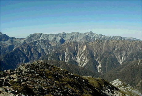 槍ヶ岳 肩より頂に登る者は,僕等以外一人も居なかった。ゆっくり頂まで攀じった。 槍ヶ岳、天高く紺碧の空を仰ぎ,山頂から望む大パノラマ。山肌は紅葉に満ちる,沢は涸れ,誰も居ない頂があった。 静かだ。 静かさを剥き出した秋が,何処までも続き,流れているようだった。 40年07月, 表銀、横尾⇔槍ヶ岳, 41年08月, 立山〜槍ヶ岳⇔大喰岳, 43年07月, 北鎌尾根, |