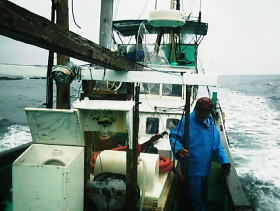 | 6月19日 | サバ群がり1度も底着せず,サバ脂なし。宮腰氏, 帰港時,濃霧に被われ,救命具を身に付けトモに避難,大型船の警笛が何処か分からず,船腹の壁を見てかわした。 |