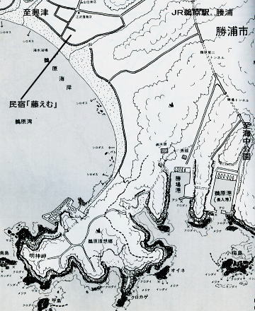 勝場港の右手にトンネルあり.抜けると鵜原港に繋がれていた。1995年までは鵜原港に「まさえい丸」は着岸されている。