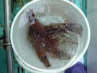 | スルメイカ | 水深200〜140m, 前半終わり〜中盤,泡入り6本ツノ18cm,オモリ150, クッションを100cmから50cmに替え底に着けるもアタリ良く分からず。 2杯(ケイムラとブルー)捕りイカ竿に交換する。クッション使わず。 イカズノに変え,上にフラッシャを2本足す,その後,左手薬指内側第2間接付近に投入時, 針を刺す。初めての事,船頭の処置が良かった。 無事抜けたが中サバ1匹のみ。イカに専念する。 船中,掛かりが悪い。仕掛けをハブラシに変え底へ,10m程誘い落すと底でアタリだす。 ツノは平均的に掛かった。底以外には中層,130と150mで落としで掛かる。 上げの誘いでは30m上,一度のみ。全てが底に集中して折,ヤリイカ釣りの感がある。 春先も同じ感じで釣れたと宮腰氏より聞いた事がある。 潮悪く祭りも多い。釣果はサバ釣りを含め両ドモが有利に。仕掛け一組紛失,オモリ150, 潮が変わり,アタリあるも,はっつきり分からず。体力も疲れ出す何度か続いた。 その後,上げてツノ2本に足残るも,掛かった自信は持てなかった。残念の感はない。 11時早揚がり,極端な二枚潮.140mで底立ち取れず。 久し振りに予報は当たった。 11杯, この所,イカの釣果が悪く船頭の予想ツゥーは抜ける。 初竿,探り釣りの場合,イカのツノを2,3本サビキの下に付けると良い。 友江,宮腰氏これを取り釣果を上げた。ただイカが乗ってからのサバサビキは良くない。 イカが掛かり巻き上げ時,サバが食うとイカをバラス結果となる。 サバの保存,エラ下を切り血抜きをした後,親指と人差し指で,背の筋を摘むよう切り, 包むよう指を回転させる。引けば内臓全部が取れる。 |
