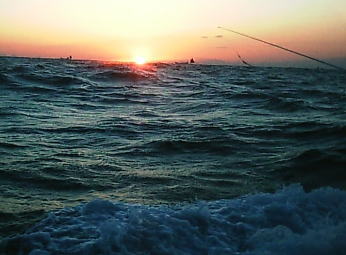 | 9月16日 | 曇後晴,南西風3〜5,波→0.5〜1,5 左舷,松村,小林,安部,右舷,安部,折原,船頭,友江, 再び夏の高気圧が太平洋沿岸に張り出した。台風の影響もあり,北へ押し上げられた前線を刺激し東京は熱帯夜に。 外房は南西の風が強く日中は30℃を越す猛暑となる。 魚種はスルメイカ,今のイカの入りは余りよくない。スソは1桁前後前半の釣果,竿頭は20杯台が続いている。 キンメを狙い鵜原港を3時出船の予定で1時半東京を出るも,ウネリ強し。故キンメ釣りは中止。 出船 まだ真暗闇の海原にでる。南西の風波が細く裂き小さなウネリに「まさえい丸」は船首を沖へ向けた。 夜明け前の暗い層雲が海原を覆い,右舷は更に暗黒の海をなしていた。 左舷左前方には幾らか夜明けの兆しを示し,その境を船は突き進む。 陸を見るに闇に包まれた勝浦の町並みが街路灯の明かりに遠く煌いている。 そして右手前の闇に陰る半島台地は灯台だけがその灯りを放していた。 昨年10月以来,本年度初めての釣行となった。もう中止する事はできない。 メンバー不足を折原氏の業界仲間「マル金」さんの仲間の参加を得る。 彼等は土曜日に乗船しているが,土曜はイカ釣りが今だ禁止されている。その為張り切り詰めているが。 右舷A氏とO氏中一中潮,満潮7:21,澄む 近海 4時25分出船,近海の勝浦沖水深150mで試し釣りするもサバのアタリすらなかった。 全員がツノサビキ及びフラッシャーサビキで望むも船中アタリ0。 船頭の予想は外れていた。即近海を諦め全速力で更の沖合へ,時間は5時を回ったばかりである。 ウネリは更に強くも私の釣座,左舷は風下にあたり南西風は意外と弱かった。 沖へ 走る事40分,5,6隻の遊漁船が早朝より底釣りを始めていた。今日は勝浦の祭,休船が多く海上は疎らとなる。 水深180m,底釣りと同じく底がポイントとなり,正にヤリイカと変わらぬ釣りとなる。 中オモリ,玉型ツノ18cm×5,幹糸8,ハリス6,オモリ150で竿をだす。 水平線を覆う層雲の中からの陽は昇り,一段高い積雲に太陽は再び潜り込むが,周りは明るさが増しだした。 右舷はヘラ状ツノ仕掛け,赤に一流し目からイカが掛かる。掛かると云っても1杯程度であるが。 左舷は濃いツノが多くアタリ0が続いた。3,4投目から掛かり始めるも船中の釣果は悪い。私には全て青か,濃い青ツノ。 バケツに少しずつ貯まるも,全てが底釣り状態に陥っていた。外道も今だなし。 今回は僚船の情報も祭で期待できなかった。 だらだらで薄い層のイカ,仕掛けを替えようとすると掛かるイカ。まだ釣果は2時間で7杯である。 流しを繰り返し,更なる沖合水深130〜150m中層下で食いだした。右舷を見習い魚型ツノ18cm×6ハリス共6に替える。 改めて初竿するも125mのクッションで道糸が切断された。まだ新しいEP6である。昨年購入し今年初めての使用。 切れた道糸が海面に漂う中,仕掛けからオモリ全てを失う。 9時,泡入りヘラ型ツノ18cm×6,水深145mで停め,ゆっくり誘い上げると重い反動が返ってきた。 慌てる事なく更に誘い上げ一荷。続くアタリも145mできた。赤と青,前半より重い吊り上げでリールはうなる。 一荷と思うも型違いの大きなスルメが顔をだす。 次の流しでは150mで道糸が止まった。シャクリ上げると又もや重くなる竿。誘って一荷。そして1杯とペースを取り戻す。 ここは後20分も走れば大陸棚に出る所である。 終盤となっても130〜150mがポイントとなる。ただ誘いがズレてきた。誘い上げて一荷の筈がバレ始める。 道糸が止まっても同じ事を繰り返し,一荷どころか1杯も釣り上げられなかった。 欲をだし過ぎか? ツノのツメは伸び,足が確り残っている。 又重い引きにズキ当るよう暴れバレるイカもいる。一荷を落す率も多くなる。 一流しに1杯は仕留めるが,後味の悪い納竿となった。11時45分, 小林4,安部10,安部15,折原8,友江25, スルメイカ22〜38cm15,全員外道なし, |