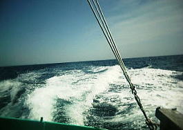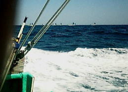 | ヤリイカ | 更に沖合. マンボー 右舷トモ左中央の霞がマンボー, 逆光と上から覗きレンスがらはボヤけている,