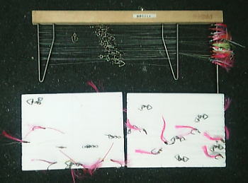 | アジ | 水深50mよりクッシングを加え探りアタリをだす。 2〜3m落しては道糸を止めアタリを誘った。良く連打するが食い悪く1匹が多い。 全ての層に居る感がある。漸く一荷,トリプルで終了した。 ムツにはイカ竿では柔らかくクッション要らぬが,その後のアジは良く利いた。 1.5×50cmで1匹が数匹にも思えるアタリが続く。 型は全て良く30cm前後20,小サバに混ざり中サバ4, ヤリイカ竿島影,電動丸3000H,オモリ150,クッション1.5×50cm。 フラッシャーサビキ,丸海津14×6,幹糸6,ハリス4,枝14cm,間50cm,(ミサキ), |
