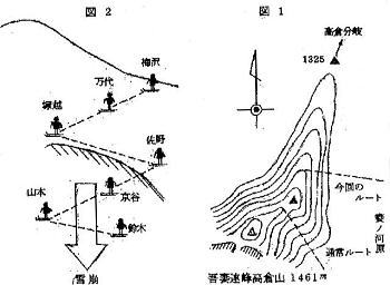 昭和55年2月25日,春合宿先発隊は高倉山立教ルートをスキーで滑降中,雪崩により事故で3名が軽傷を負った。これはその事故報告