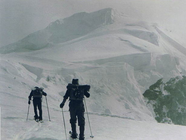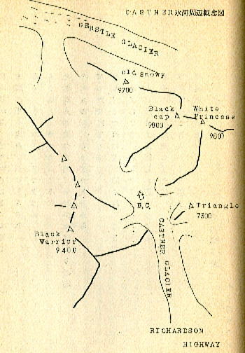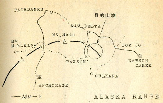 10周年アラスカ遠征記念 m富山貞男(s38卒),新津 賢,中山司(s40卒) アラスカ遠征計画の私一その序説一 富山貞男 我が,RHCの十周年記念行事の1つとしての,アラスカ遠征計画の話は,丁度2年前の正月の富士五合目のテントの中から生まれた。 メンバーは中山,新津,田中,松村で,御殿場の太郎坊から登り始めてのであったが,例年より雪が少なく, 最初の計画では二合目か,三合目あたりで,設営する積もりが,五合目まで足をのばすことになった。 新津と田中は計画変更でブーブー言い,雪の少なさをなげいて,彼等にとって無慈悲な登行であった。が, 幸か不幸か翌日は吹雪で一日中、テントの中でチンデンせざる得なくなった。 しかしこのチンデンの中での退屈からアラスカ行くのきっかけが生まれたのである。 山に入ってヒマが出来ると,必ず来シーズンはどこにしよう等という話がでてくる。この時の新津、中山が,台湾の玉山(新高山)はドウラロウカと持ちかけた。 台湾なら日本語がまあまあ通じるし,国民感情も非常に友好的であるとの話であったが, 富山はどうえ海外へ行くなら,台湾なんぞよりヒマラヤの方がエエゾと言い出したのであった。 ここで話は熱くなり・・・・あとは皆テンデにしゃべりだしたので速記できなくなった。 しばらく国会での論争の様に話の収拾がつかなくなり,あまりのヒドサにカンシャクがおきさうになったので富山が出て, ソナラ,RHCの十周年の頃にヒマラヤに出発出来るよう,目安をつけて,計画を立てていこう,という修正案を出し,全員一致でさいたししたのであった。 そしてその後の1年はヒマラヤ関係の本,文献を読み漁り,つきに1回の会合を持ったり,計画は着実に進んでいった。 目的地はポカラからクチナート方面のヒマラヤ観光旅行で,氷河を踏めば上出来という構想であったが,ネパール国の登山禁止やインナーラインの拡大で, 我々の目的とするチベット的な奥地への旅行は困難であった。我々はこの計画を考え直さねばならぬと、各々考え始めていた。 次ぎの年の正月,中山,新津,富山の3人は木曾御岳のスキー登山の中でヒマヤラに変わる遠征地を考えてみて, ニュジランドとアラスカが候補に浮んできたにであった。 中山は最後までニュジランドに執着したが,新津,富山の行くなら大陸だ,という論におされ, ここにアラスカ行計画が目出度く決定し,メンバーもこの3人で実行となったのである。 「アラスカ遠征計画」 新津 賢 アラスカの総面積は152万平方km,2本の4倍以上あり,その内の1/3以上が,夏は太陽の沈まない日がある北極圏内にある。 我々はこの大陸で登山目標とする山を,その内陸部に求めた。主峰マッキンレー山(6191m)を含むアラスカ山脈の東端に位置する。 ブラックキャップ,ホアイトプリンセス,オールドスノー,スノーホワイトと云うような,氷河に包まれた3000m級の山塊である。 我々はこの山塊を決定するのに次ぎの条件を考えた。 ・氷河の山である ・高度の登山技術が不用 ・天候が安定している ・ベースからの放射状に登山ができる ・交通が便利(ハイウィーが近い) ・飛行機を使わぬ(資金的に) 以上の6条件を満たしてくれる山と云う事で資料なだ集める一方,アメリカの地図を発注し,又アラスカアルペンクラブに連絡を取り, 写真を見る事で決定したのである。 コース日程 昭和44年6ガツ日,横浜発(テキサス49・USA) 6月17日,カナダ,バンクーバー着,20日,バンクーバー発、25日,アラスカ,フエヤパンクス着、28日,フェアーバンクス発、ブラックラビット着、29日,ブラックラビットより入山 30日,Theyer hut着、7月1〜2日,荷揚げ、3日,休憩日、4〜18日,Black Cap, Surdy Summit, Black Warrier, Whife Princess 18日,下山,キャストナ橋よりフェァーバンク着、25日,アンカレッジ着,解散, ![]() A,CよりのW,Princess![]() Bc地点周辺 高度単位はfeetBcはハイウェーより10miles A,Cより135m/m望遠レンズで![]() W,Princess食糧 主食及び入山中の食糧は生もの以外は日本より持参 入山までのアプローチ及び下山後のアラスカドライブは現地食とする。 装備 春山装備一式(含む,三ッ道具,フイックスザイル) スキー装備 自動車現地購入 尚,登山以外の生活費は1日8弗とする。 写真提供は富山氏 RHCT・・・s44,06,06 |