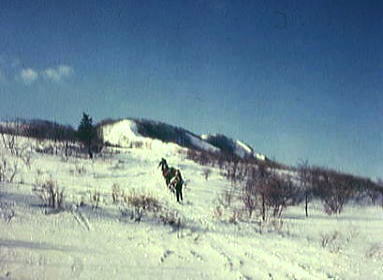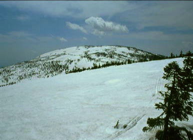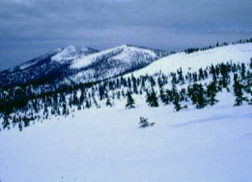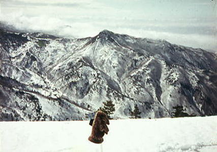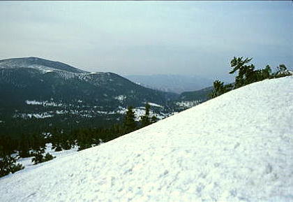 , 東大嶺東大嶺. 風に逆らいガスの被う広い頂が.ガスの切れ目から覗まれる。だが又直ぐ隠れ.薄暗さが漂いだしているた。 ここは吹きさらしの雪原で雪表は潜らなくなるが.ガスが曲者になる。僕等はその中を直ぐ頂へ登って行く。 頂には古い赤旗が風にたなびき.強風で布はほぐされ.字らしい跡が残されていた。 紛れもなく.かって先輩達が登った時のものだった。 下山.東大嶺―栂森 |