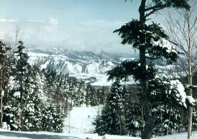 | 3月01日.風雪後曇 家形ヒュッテ7:20一8:35家形山:50一11:15烏帽子.昭元山の鞍部12:00一13:30東大嶺 夜も明けぬ内,ストーブに仲間が集まった。 冷え込みが強く1人起き.2人起き.ついに全員が起床時間前に起きた。 赤々と燃える薪を尻目に.吹雪が隙間を見付けては小屋に舞い込んでいた。 僕は眠らなければ云う意識より.先への希望に満ちていた。馬力のみの体だが縦走への憧れに満ちていた。 縦走 2尺2寸のザックを背に再びガンチャンにでる。ツボ足から雪が舞い.粉雪が風に飛ばされて行く。 雪の締まった家形の肩は風に追われ.あっ気なく頂稜に達した。これからが本番である。 大きなやぐらのある頂を横目で流し.吹雪を避けるよう西へ進路を取る。 森の静けさは樹氷に覆われ,今までの外の荒れ狂いとは異にし.風も途切れがちとなっていた。 静かだが淡雪の吹き溜まりが凄い。昨日.偵察した折の赤旗.ベンガラは.もう霞み掛けているものもある。一つずつ過ぎて行く。 赤旗は風にたなびき.時には吹き溜まりに押され.傾いて先を示し.ベンガラはピンクに染まる印になっていた。 鞍部に降り立つと疎らな樹林が雪帽子を被い現れた。兵子は稜線からは少し北へ外れていた。 烏帽子岳より東大嶺. 昭元山を越え鞍部より昭元山を前に右へ巻き始めると再びラッセルも深まり,スキーを履くも膝まで潜る。 ここは斜面は横切る形で詰めるが転んだら大変だった。 沢側へズルズル落ち.体中が泡雪に埋められる。起き上がるにも馬力がいた。もう少しで深雪帯も過ぎる。 疎林を縫い兜を左へ巻けば.広い雪原にでる。 |