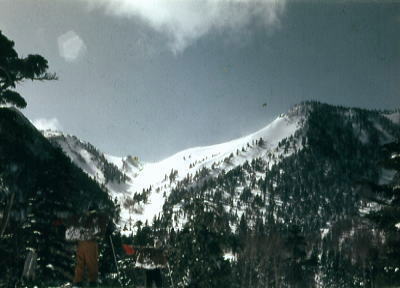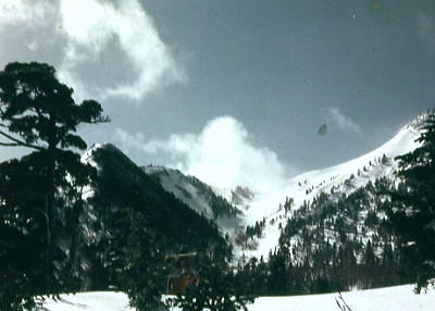 | 東大嶺への山名類? 家形山の南面を斜めに西に登る。この際あまり南側を横切ると藪が酷いので注意を要した。 兵子.ニセエボシ.烏帽子山とも南を巻いて昭元山との鞍部にでる。昭元山は北側を少しずつ登りながら巻いて. 地図上の無名のなだらかな高地を進むと東大嶺の東端にでる。この付近の雪質はきわめてよく.樹氷群もまた素晴らしい。 新しい五万分の一地図では我々が西烏帽子と呼んでいる山は昭元山.昭元山と記されておた。 山はカブトと記入されているから注意を要する。大ていのガイドブックや地図は殆どが我々の呼んでいる名で記されていた。 即ち家形山.兵子.ニセエボシ.烏帽子山.昭元山(1892.6m).東大嶺の順になっている。 2月02日風雪後晴. 明月荘―峠 明月荘8:05一10:40栂森一13:20(1000m地点):35一14:05峠15:04=12:09板谷:40一16:45五色bc. 一晩中.荒れ放題で唸りに唸った。軋む処か揺れ強く.半分雪に埋まった掘っ建て小屋が潰れそになる。 頂稜の原っぱに明月荘と云う.1軒の小さな小屋があり.烈風は周りの樹木も低い。そこを絶え間なく這い上がり襲っていた。 西風の考えられぬ力が小屋を潰す。軋み壊れそうな小屋に僕等は身を丸め.夜の明けるのを待っている。 余りにも強い風圧は気をも縮込ましていた。風は唸る轟音と共に小屋ばかりか.大地を揺るがしている。 それも地震を思わす横揺れとは異なり戻らず.身を丸め耐え忍んだいる。 完全装備に身を固め小屋をでた。目出い帽にフードを被り.全てを身に付け完全装備で外にでる。 天候は朝になっても回復せず.ここ東大嶺の裾肩を吹き荒れていた。 僕等はここを逃れるよう小屋をでる。スキーのバッケンに足を固定し.地吹雪の荒れ狂う中.待望の滑降が始まった。 栂森を下り.雲切れる左から田沼.滝島先輩.私.鈴木 嵐から陽差しを浴びての下山 栂森 暫らくの間,斜滑降気味の直滑降が続く。風で谷間へ滑り落とされないよう.ツルツルのアイスバーンを滑る。 明るく思えた外は慣れるに従い.様子も分かり帳を思わす暗いガスの渦が更に視界を閉ざしていた。 風も雪上より這い上がるよう巻き上げ.地吹雪となり身に襲ってくる。 眉毛に氷柱が垂れ.バタバタはためくフォードを縮め.息するも耐え耐えになる。 テールは雪面の薄氷をバリバリ割った。頬を叩く暴風を避け.下を向き々々下る。 偵察の折.立てた赤旗が見えだした。 高度は見る見る落ち.明るさが幾らか持ち直し.目が開けられるようなる。 風が治まりだした。降雪も落ち付いてくる。そしてガスは切れ.陽さえ差しだした。 絶好の下山日和になる。振り見れば国境の峰々が顔を現わす。 そしてガスを切り,輝く白稜が次第に姿を見せ.僕等を山の凱歌に酔わせだす。 小栂森で保坂さんを心配して根岸さんパーティが三浦.三田と共に姿を現わした。 迎えに来てくれた仲間と僕等。顔がほころび.たった3日間の別行動でも友との再会は嬉しかった。 偵察時.世話になった雪洞は半分ほど壊れ残骸をさらしている。その雪洞を横目で見ながら彼等の後を追う。 締まった雪面が.キスの荷をも軽くし飛ぶよう滑る。なめらかに滑るテールが腰に乗り.心も弾んていだ。 落ち始めた雪庇を越え峠のスキー場へ。スキー場は名ばかりで.今日も1人のスキーヤーも居なかった。そして峠の駅へと滑り込む。 板谷の叔母さん 板谷.駅前の連絡所では何時も叔母さが茶を差し出してくれる。 温い湯だが何故か心が落ち着く。入山前のお茶1杯や.ツァーを終え迎えの1杯,優しいお茶である。 又明月荘でしゅる粉をこぼした手前.僕は保坂さんにうどんのご馳走を催促する訳には往かなかった。全員が黙っている。 誰もが頼むでもなく呑む。安いお茶が以外と上手い。 それでいて顔が知れているせいか呑まぬと怒る。笑いながら,8そんなに時間がないのか!」と。今日は久し振り.お茶の御代りを頼んだ。 外が寒いせいもあるが.お茶より叔母さんの誠意が篭もっている。 それ故.その都度常に寄る事になる。 高倉山より栂森前川源流を隔て東面の栂森 s42年02月.栂森山偵察.縦走 s43年03月.栂森山 前々年度40年.偵察. 五色⇔家形ヒュッテ一兵子 前年度41年.偵察.縦走隊報告. 家形山〜東大嶺 本年度42年.偵察.縦走隊報告. 家形山〜東大嶺 翌年度43年.偵察.縦走隊報告. 家形山〜東大嶺 春期ツァー合宿.吾妻東北部.1. 偵察.峠⇔東大嶺肩. 春期ツァー合宿.吾妻東北部.2. 縦走本隊.家形〜東大嶺 春期ツァー合宿.吾妻東北部.3. 高倉山 |