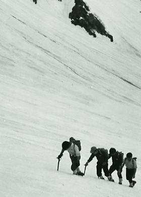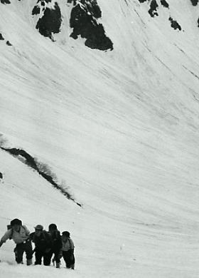X.Yのコルより奥穂. 中沢.西沢.見城さんと私奥穂高と白出乗越 ![]() X.Yのコル 涸沢カールの雪原を眼下に仰ぎ.穂高の峰々が涸沢のカール谷を囲むよう構えていた。 見渡す限りの雪と岩の御殿. 見渡す限り他に登山者も居ず.独占した岳が目の前にに開かれていた。頂稜の先には槍の穂も姿を現していた。 コルからは今築いたばかりのトレースが池ノ平まで真っ直ぐ刻まれ落ちている。 大きな岳.自ら築いた初めてのトレースに中沢君の瞳は輝いていた。自ら大斜面を切り登り詰めたコル。 コルにいる仲間達. 予定外の行動に頂に立ったような軽やかさと.岳の大きなを噛み締めていた。 岳の峰々はまだ高いが.カールの底は蟻地獄の如き白く輝き見下ろされている。 重いザラメに尻セード.恐怖心はない。はしゃぐ先輩に後輩がいる。 雷鳥と競争し.崩れだし空は間を空けず雨雲を落し.降雨と争い横尾へ降りた。 横尾―上高地 |