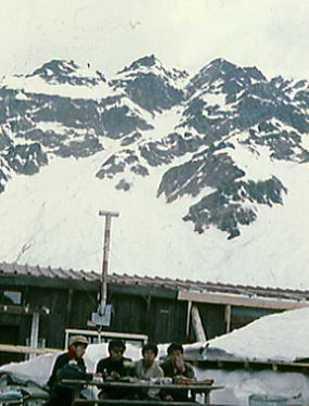 | 6月10日晴後曇. 横尾―上高地 横尾Ts4. 9:45一10:30徳沢11:20一12:03六百沢一12:25上高地15:30=新島々=17:03松本20:00=新宿. 日曜日.上高地へ下る。 横尾の明るいガラ場を過ぎ.ひっそれ静まり返えった梓川左岸の散策路を歩む。 微風に揺られ木陰の被う里径へ。 徳沢の長閑な芝も懐かしい思い出を抱かさせている。 昼なお薄暗いナラ.シガの林径.人多い上高地へ入る径。 子供を挟んだ親子連れに行き違った。何と見ていて清々しい気を起こさせていた。 山を降り初めて擦れ違った親子連れだった。僕等は上高地に向かいダッシュする。 2日目.大天井岳での昼食.フランスパンを齧る仲間達 テンポよい見城先輩 マイペースの斎藤君 気の回る西沢君 以外と生真面目で好奇心が強い中沢君 論証なし山行費¥1200 上高地線の除雪は4月25日までに終わり.26日から路線バスが運行した。 岩盤むき出しの素掘釜トンネを掘削拡幅工事して.2年越しに完成.舗装は4月24日までに終了している。 上高地線全体の拡張工事.幅4.5mは完成未定のようだ。当分の間一方通行となろう。s43.06.10.下山. 山小屋料金 毎年値上がり(昨年¥100)している北アルプス山小屋の宿泊料が今年も¥50値上げされ.@1050となる。 この料金は米持参の料金で.米を持ってこない場合は@150〜@180高くなる。素泊まりは@600〜@650 我々には関係ないことだが物価は山でも上昇していた。・・今年の山小屋の新設.増設はなし。日本アルプス観光連盟 燕岳〜常念岳乗越.仮c〜常念岳 常念岳〜上黒沢下降〜横尾⇔涸沢 旧hp.PhotoHighwayJapan.燕岳〜涸沢 上高地の年表 江戸時代.安雲村島々から上高地明神までの徳本峠道が新しく開かれ.以後松本と飛騨を結ぶ重要な街道となる 1829年(文政12年).念仏行者・幡隆上人が槍沢から槍ヶ岳に登頂し開山 1875年(m08年).英人技師マーシャルが焼岳に登り.翌々年の77年には英人技師ガーウランドが槍ケ岳に登り「日本アルプス」と命名 1880年(m13年).上条嘉門次が明神湖畔に初代「杣の小屋」として建てたもの。山小屋「嘉門次小屋」 1885年(m18年).上高地牧場を開設。徳本峠を越え牛や馬を放牧する 1887年(m20年).上高地温泉場(現上高地温泉ホテル)の宿泊営業開始 1907年(m40年).焼岳大噴火 1910年(m43年).吊橋として初代河童橋ができ現在は5代目を迎えている。当初は丸太が組まれたはね橋であった 1922年(T11年)01月.府県道279号.槍ケ岳上高地線(槍ケ岳=上高地)の認定 1923年(T12年).奥原英男が雑貨屋・食糧品販売として「西糸屋」を開業.翌年旅館業を開始 1915年(T04年).焼岳大噴火で梓川を塞き止め大正池が誕生する 1916年(T05年).農商務省山林局は上高地周辺を保護林に指定.木材伐採を禁止する 松本小林区署が大正池一槍ヶ岳間の登山道を開設 1923年(T12年).雷鳥が国の天然記念物に指定される 1924年(T13年).手掘り工事により釜トンネル開通 1931年(s06年).4月01日に国立公園法が公布される。 1933年(s08年).梓川沿いの道路が完成。大正池までバスが開通され.徳本峠越えをせず便利となる 1934年(s09年).上高地一帯が中部山岳国立公園に指定されカモシカが天然記念物に指定される。上高地牧場が廃止 1935年(s10年).河童橋までバスが開通 1952年(s27年).上高地が国の特別名勝.特別天然記念物に指定される 1955年(s30年)02月.長野県道24号.上高地公園線(中ノ湯=上高地)の認定. 雷鳥とカモシカが国の特別天然記念物に指定される 1956年(s31年).井上靖が小説「氷壁」を発表.この頃より登山ブームが起こりだす 1957年(s32年).3代目河童橋が架け替えられる 1965年(s40年).奈川渡ダム着工,3ダム同時進行.東京電力 1965年(s40年)07月.上高地ターミナルが竣工,村営上高地食堂が営業開始。燕岳〜槍ヶ岳.路線バス(上高地=島々.松本電鉄=松本) 1966年(s41年)10月.松本電鉄上高地線,「赤松駅」は島々駅からターミナル機能の移設に伴い「新島々駅」に改称 1967年(s42年)07月.涸沢Bc,石井スポーツ自家用車で梓川の川底のダム工事現場を下る。(上高地=新島々.松本電鉄=松本) 1968年(s43年)06月.冬期閉鎖を利用して釜トンネル改修工事完了。3年目で幅4.5m.高さ4m.照明25基.燕岳〜涸沢.路線バス(上高地=新島々) 1968年(s43年)07月.槍ヶ岳北鎌尾根,路線バス(上高地=新島々) 1969年(s44年)11月.安曇(623,000kW)・水殿(245.000kW)・新竜島(32.000kW) という3か所の水力発電所が新設される 安曇ダムに係る付け替道(R158号)が供用開始されて以来.上高地へのマイカーが急増し規制開始。梓川沢渡に臨時駐車場 1970年(s45年)07月.明神岳主稜.(路線バス(上高地=新島々)・・ 1970年(s45年)10月.横尾本谷〜千丈沢.タクシー(松本=上高地)を利用・・荒天で新穂高から新穂高ロープウェイで上高地へ 1971年(s46年)06月.横尾生活.路線バス(上高地=新島々)・・荒天で屏風岩中止.涸沢散策と横尾で渓流釣り 1973年(s48年)度より梓川の河原は駐車を禁止,7月〜10月の土日及び8月01〜19日の全日.渋滞時は一時通行を制限する 1975年(s50年)7〜8月からマイカー通行規制.夏季のみ30日間。4代目河童橋が架け替えられる。梓川での漁が全面禁漁となる 1985年(s60年)01月.新島々=島々間が廃止となり.新島々が上高地線の終着駅となる。上