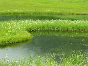オオスズメバチがブンブン唸っている。平坦なトチ.ブナの林道を抜けると広大な芝の原が広がりを見せていた。