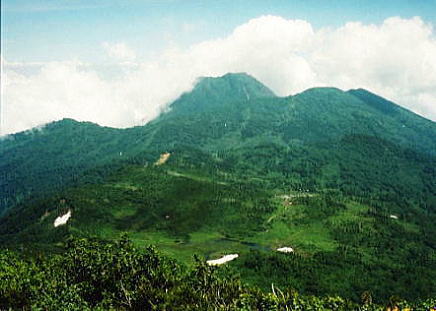 反面北側は比対称山稜を築いていた。その西隣りの火打岳2461.2mが雄大な高みを持ち望まれた。