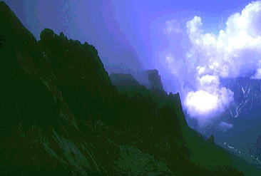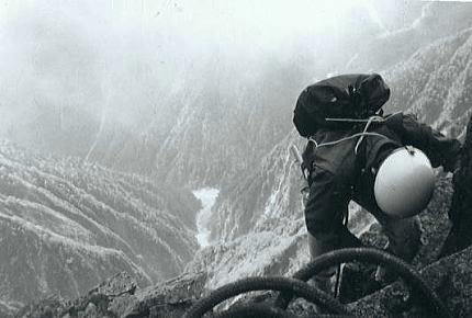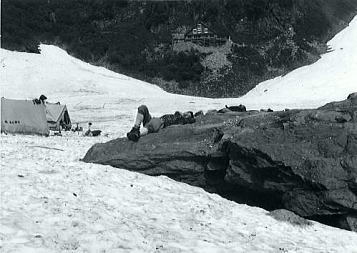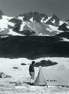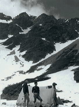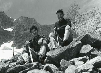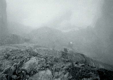 ![]() ![]() P2.北山稜の水野クラック 水野クラック 水野クラックはガスが涌き出た為.なかなか概念を把握できなかった。 残置ハーケン3本を利用し1本をスタンスにして肘をフルに利用.残りのハーケンはジッヘル用に使用した。 長塩に云われていたが息の休まぬ登攀だった。 残置ハーケン4本使用.1本はジッヘル用.別1本はホールドとして使用した。 最後の詰め ガスに掛かる水野クラック頂稜 南岳から望む北穂滝谷・・2007.09.嵐の南岳〜奥穂高岳涸沢Bcへ 17:15北穂高コル一17:30南稜上部.(三浦.田沼に会う)18:20一19:50(北穂ゴルジュ)一20:30Bc4. 友との再会 頂稜に出るとガスも切れ東.涸沢寄りに陽光が漏れだした。 涸沢への下りる道中.南稜でツエルトを被った田沼.三浦に出会う。会えるかもと思いもしたが偶然のチャンス。 北鎌尾根はずっと雨の中だったと。 北鎌の末端から登った彼等はやつれた顔でシゲをぼうぼうに生やし.笑っている。 粉末コーラを見付け.雪のロックでコークハィ.互いの無事を祝した。 そして今までの状況を報告し合い.午後の楽しい一時を過す。彼等は明日滝谷へ.我々は山を下りる。 北鎌尾根末端より穂高岳. m田沼.三浦. 09日. 北鎌尾根.P5のコルで強雨のため停滞. (涸沢停滞). 10日. 雨が激しく風に樹々が鳴り.天丈沢の音がゴンゴンと不気味だ。小休みになったので撤収.雨でズッシリ重くなったザックを背負い出発。 状況悪いこと想像以上.岩はすべて浮き.土はグズグズで踏むそばから壊れる。 冷たい雨に全身濡れ苦闘して独標を越す。ガス濃く視界5mもきかず。ルートを失い.ハーケンが連打してあるスラブにつきあたる。 重いザックを気にしながら雨の流れるスラブを.かろうじて突破。北鎌平で1本取る。 大槍を攀じっているうち雷がくる。ヒョウが降り雨一段と激しく音をたてて降りしきる。全身ずぶ濡れ。 ルートわからず.視界殆ど利かず雷が鳴り稲妻が光る。クラックを強引に攀じるとピークだった。(前穂北尾根). 11日. 初めての快晴の朝。のんびり槍.穂の縦走を楽しむ。誰もいない。北穂の南峰の近くにツエルトを張り.濡れたものを乾かす。 田沼,三浦と再会。(滝谷第二尾根) 12日. 朝.雨の降る中滝谷へ向かう。(下山) 北穂沢 北穂東稜と北穂沢.Bcより北穂沢下降 三浦.田沼と別れ北穂沢をグリセードでゴルジュ帯まで滑る。 顔を真赤に染めた和田のグリは酔いが回ったらしく.よたよた下る。 何度も何度も息を整え停まっては下って行く。 酒に弱い彼は会ってよほど楽しかったのだろう。 カップ半分のコークハイ.ウィスキーを少々垂らしただけなのに。鬼のように赤面しふら付き下って行く。 大きなクレパス 北穂沢のゴルジュ帯は上半分はガレで.下半分は滝の連続と雪渓が口を開けていた。 滝上より左岸に移り.濡れたフェース気味の側壁をブッシュを頼りに降りた。 そして最後の2mハングは岩が濡れ扱けているだけに.動きが取れず飛び降りる。 後は涸沢Bcまで雪渓が続いていた。 涸沢ベースキャンプ.7月12日晴 下山 下山日.梅雨明け強い陽差しを浴びる 下山の朝.涸沢のテントサイド脇天幕を張って5日目.降雨による雪の減少は激しく入山時より40cmも減った。 涸沢のモーレンは頭を出し始め.長い雨の後は強い陽差しが訪れている。 見る見る地肌を現す涸沢Bc下山 7月12日. 涸沢Bc4, 13:15一14:30横尾:55一15:45徳沢16:20一17:14百沢:20一17:50上高地18:30.H= 20:40新島々21:04=松本.急行「穂高」.23:45. 13日. =5:30新宿. 涸沢Ts 完全に梅雨が明けのような中休みになる。持ち物を全部乾かし時間を掛け撤収した。 モーレンの乾いた岩上に寝転び,天を仰ぐ。既に岩肌は陽の暖かみを受け.僕の身にも温篭りが伝わってきた。 心地よい陽差しに空は濃く眩い。 上高地 遅い出発が下山最終日の今日も慣例になってしまっていた。 ペースは間々よいものの徳沢へでて.何時もの長閑な散策路を楽み上高地へ。 適当な湿気を含んだ裸土の径が梓川左岸沿いに続き.その径は常に陽差しを閉ざす樹林にも被われていた。 先を急ぐでもなく.同じペースで焦る事もなく.木漏れの陽が踊る梓川沿いの径を歩む。 ただ時刻の勘違いが上高地発.最終バスに乗り遅れる。 便乗し.梓川の河原を下る タクシー談判は運賃を吊り上げている。最終バスが出たことで.話せば話す程.吊り上げる。頭にくる運転手。 まだ正規料金で乗った事がない僕に.更にそれに輪を掛け運賃を要求する運転手。憤慨し一晩待とうかとも考えていた。 時よく駐車場.15mほど先で石井スポーツ店の自家用車を見付けだした。 運が良かった。奇声を上げザックを詰めている彼等に.笑い顔で強引に便乗させて頂いた。 唸る車 5人乗りバンに7人.更に重いザックを乗せ.底を擦りながら梓川を下って行く。 よくも全員乗れたものである。その上.荷は量もあればかさもあり皆重い。 僕は説く.現代車は凄いと。積め込めれば車は走ると。強引な解釈で走りだした。 車は悲鳴を上げ.無理な唸りを吐き続けている。 乗った以上,道中降ろされる事は,あるまいが超スローで走るも暫し底を着く。 「バー