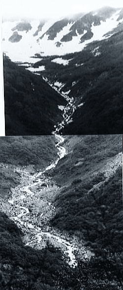前穂高岳北尾根の末端.屏風岩横尾谷上流 ![]() 屏風下.涸沢右岸の高みより |