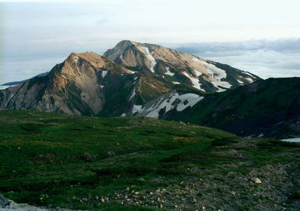 | 8月09日快晴.起床2:00 白馬岳Ts6. 4:30一5:25白馬岳6:06一7:15大日岳:30一8:42白馬大池c7・・3:00,アスピリン1錠.服用 ご来光を目差し白馬岳山頂 ご来光を浴びる ![]() ![]() 次第に雲海の山波が明ける白馬山々頂 日の出に10分.間に合わず白馬岳の頂に立つ。 頂の冷え込みの深さが却って太陽を神秘的に色刷っているよう思え.雲海を割り朝日が昇る。 朝の清々しい陽差しを両手で深呼吸し腹いっぱいに吸い上げた。 陽光が昇るにつれ岳々はオレンジ色に染まるモルゲンロートに染まり.直接射し込む陽光に濃さを増し.薄れると朝方の山肌に戻される。 暖かさと明るさを大地に与え.日の出のをショウを終えたアルプスの岳々は煌めきだしている。 雲海が湧き.岳は異様な程の鋭さと大きさで構え.それぞれの頭を聡明に描き出し.針ノ木岳へと後立山の峰々が繋がり一望された。 |