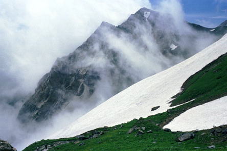 夕陽の杓丈,白馬鑓ヶ岳. ![]() ガス掛かる杓子岳 |