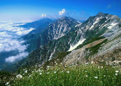 ぐるりと見渡すと昨日.一度も見られなかった雪多き剣岳も陽光を浴び.鋼鉄の山肌が立体的に姿を現わした。 合宿を終え.下旬には岩と雪を求め.剣岳東面に入る積りでいる。 新潟.富山.長野の県境の三国境を越える。穏やかになる山並に変わり,大らかな丘陵には豊富な残雪をを抱き待ち構えていた。 遠くにこれから目指す雪倉岳.朝日岳の岳々も眺められ.何処を見ても山また山で.その中心に私がいた。 白馬岳周辺地形図 夏合宿U.1 燕温泉から妙高山群横断・・立教大ОBの小谷温泉 夏合宿U.2 猿倉から白馬三山を越える 夏合宿U.3 白馬乗鞍岳から蓮華温泉を経て七本かつら |
