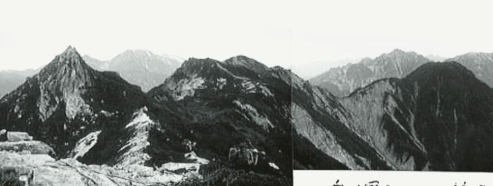 水晶岳(中)と鷲羽岳 薬師岳より黒部.上廊下を隔てて夏合宿Ⅲ1.阿弥陀一立山一蔵之助平一南沢出合 夏合宿Ⅲ2 南沢出合一雲ノ平一太郎平⇔薬師岳. 夏合宿Ⅲ3.太郎平一三俣蓮華岳一槍ヶ岳⇔中岳手前.一新穂高 |