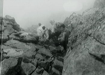 | 幻の穂高 行けるも無謀と云えぬ先に.先を諦める。 引き返すと決断した為か気が落ち付き.一年生のペースがボンボン上る。3時間ぶっ通しで槍平に戻った。 諦めと先へ進める落胆の差がすこぶるある。天候は回復し始めていた。 言葉では吐けぬ憤慨があるも.何処が良いとも.悪いとも云えぬ,耐える気が心を抑えていた。 今日.昨日だけではない。よく頑張った。もう一泊し南岳から下山する気も失われている。それこそ快晴でも歩くだけのルートになろう。 一年を誉め.二年生に感謝を。先輩の西村さんは最後まで無言で支えてくれていた。 掛け声の一番大きいのも先輩だった。 後半日.天候なり彼等が頑張ってくれたら.穂高まで踏む事が出来た筈である。 ただ戻る事にした今.全員に槍平まで戻る事を告げる。 穂高を目の前に.ツエルトを握り締め.無言で頷く仲間達。僕は各々の顔を覗き込みツエルトの外にでる。 再び槍ノ肩 最後の侘しい昼食を摂る。 生まれて初めて味噌飯.塩飯を食べたが.今日は味噌.塩さえなく.残り少ない砂糖を飯に掛け.口に運ぶ。 やはり味がなければ飯だけでは食べられない。集中地を目の前にして侘しい昼食を摂る。 今思えば昨日女子パーティから調味料だけでも.もう少し多めに援助してもらえばよかった。後の祭だった。 そして穂高を断念してよかったと。 最後の決断 |