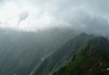 | 8月29日起床2:30.風雨強し. 大喰岳北面峰⇔中岳.―飛騨乗越―新穂高 夏嵐 昨夜より明け方まで.もろに荒れた。 テントを押さえる石のブロックが飛ぶように思え.強風が吹き付ける。 雨より風が強い。大きな石が動いているよう思える。張り綱が2本切られた。 二年生がよく働く。切れたと聞き私も動く。凄い風が外は唸り舞っている。 0時頃,グランシーが持ち上げられ.寝ている床に体が浮く。風雨強い起床となった。 出発できる姿勢でテントに留まっている。夜明けに風が治まるように。 斎藤と新崎は荒れる山に一年生の緊張が甚だしい。最後の詰め集中地を目前にキレットの壁があった。 夜が明けテントをでる。まだ烈風は治まらず.「前にぴったり付け!」.「後は自信を持て!」と促す。 大喰岳北面峰Ts13. 5:40⇔中岳.一6:20.引き返す. 一7:20飛騨乗越一8:40槍平小屋9:45一11:10白出沢分岐一11:48新穂高穂高平.c14 風雨強し 予想を裏切り明け方も荒れ狂う。昼頃弱まる事を計算に入れテントをでた。 頬を叩く暴風は足をすくい.思うように距離が捗らない。 稜線の風雨に慣れない一年を励まし進むが.遅れ気味で大喰岳の下りでペースを崩した。 動けるのに動かなくなる。体より気が負けていた。 経験のため南岳小屋までと思うが結局.中岳で諦めざる得なかった。 精神的に弱い一年生.終える気持ちの方が勝り.全てが自分に負けていた。昨夜はもっと食事だけでも十分与えれば良かった。 ただ食物がない今.与える事も出来ず.その時点で気が落ち込んでいた。 |