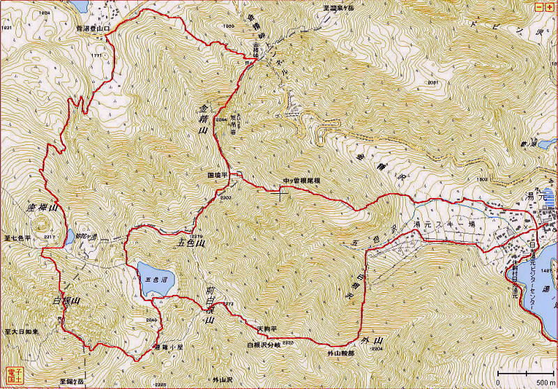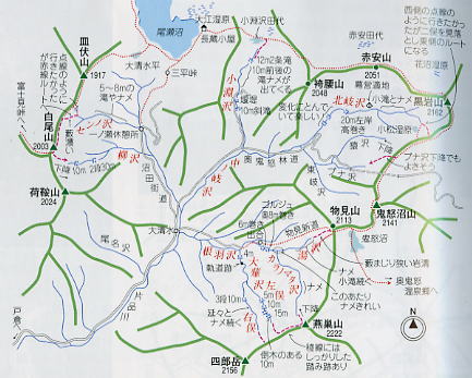 菅沼→丸沼→大尻沼→大滝川→片品川→利根川 奥白根,前白根山ウォッ地図