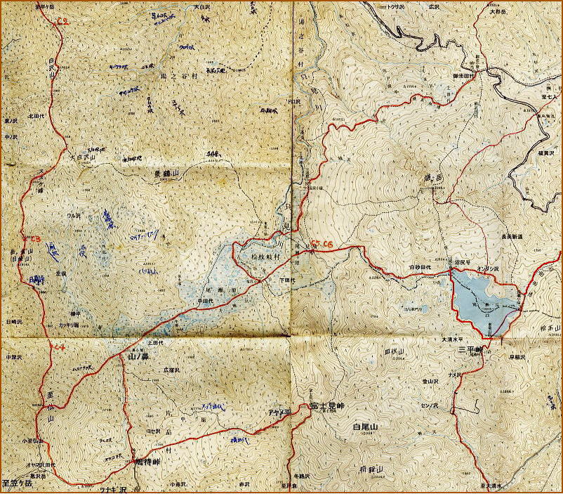 奥白根山地形図 奥鬼怒山周辺略図・・上図