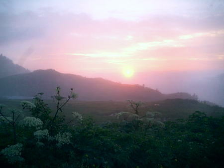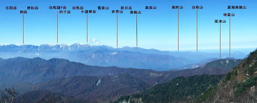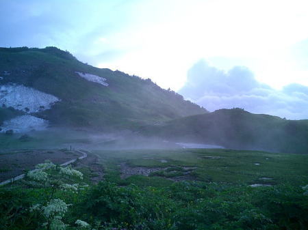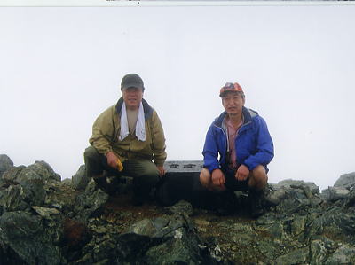 白馬山荘 旭岳を背にビールと焼酎で乾杯 夕暮れの杓子岳白馬山荘 白馬山荘は村営の稜からでも見渡すよう見える.どでかい山荘で頂の肩に横たわっていた。遠くから望むと砦か.大きな軍艦のよう構えている。 1000名以上が宿泊可能な恐ろべき山小屋で日本一.村営が3番目になるそうだ。唖然と思うと同時.時代の流れを感じ取っていた。 とうとうアルプスへ来た。不安定ながら如何にか腰も持ち堪え.腿の引き連れや肉離れも押さえられていた。 幸運だったかも。湧き上がるガスをぬい.間近に霞む旭岳を望み.アルプスの稜に出たと祝福し彼と乾杯した。 ガスが切れる一瞬.遥か彼方に剣岳が望められた。余りにも小さく.立山は低く確認する間もなく雲に閉ざされている。 山荘前では更にガス濃く流れ込み.手前の杓子岳や旭岳さえ完全に見えなくなる。 それ故,期待に満ちた富山湾に浮かぶ漁火は.夜になっても見える筈はなかった。先へと期待を繋ぎ.これから日本海を目指す。 昔と違い山小屋は町営の方が頂から離れていることもあり.ダントツにサービスがよいらしい。 白馬山荘は頂上直下.標高2832.2mにあり.s34.08.に全焼失し再建されている。収容人数は1500人.日本最大の山小屋 宿泊料金は¥8500+弁当1100. 40年前の66年当時は村営テント場に宿るが.宿泊料金は1/10の¥850(米持参)だった。 高層天気図19日9時.20日9時 8月21日雨・・日本海からの遠雷を聞きき北上 白馬山荘h1. 6:50一7:05白馬岳一7:25白馬池分岐一雪渓横断8:25一9:30雪倉岳一11:15燕岩 一12:15水平歩道分岐一14:25朝日岳一15:30朝日平「朝日小屋」h2 部屋 東西に長い中廊下が続き両側に10畳ほどの部屋が幾つも長屋のよう連なっている。北側の薄暗い部屋が指定されていた。 布団が12組ある広い部屋だが一日中.日差しの入らぬ少し湿気の強い部屋だった。 部屋の入居者は5名.布団を目一杯敷いた贅沢さが仇となる。折った布団は重く段違いで背が息苦しく.時折起きる破目になった。 敷き直すには隣りを起こせねばならず諦めている。 4時頃夜明け前の闇の中.遠く雷鳴の轟く音を聞く。部屋の窓を叩く雨足には波があるものの.轟く音は途切れなく続いていた。 海岸沿えの金沢地区では早朝から「大雨注意報」が発令され.私達の今日の行動をも揺るがしている。 共に寝た3名の登山者は雨の中.白馬三山を越え鑓温泉へ。我々は雷鳴に向かい雪倉山を越える。 白馬岳より日本海.親不知への稜 ![]() 快晴.無風に恵まれた高妻山々頂より.2009.10 白馬岳.雪倉岳より窪んだ先が朝日岳で.長梅山.犬ヶ岳・・右端が青海黒姫山 |