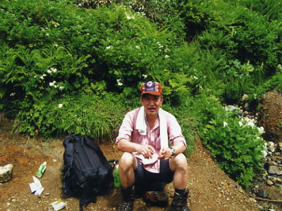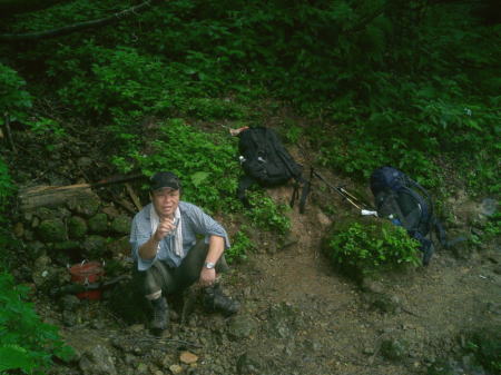 後立白馬岳より栂海新道を綴り親不知へU 再び朝日岳を越え吹上のコルから更に北上する―栂海新道に入り黒岩山.サワガニ山.犬ヶ岳へと抜け国道8号線.親不知へ 猿倉から白馬岳大雪渓―朝日岳 朝日岳から栂海新道を北上し.親不知ヒスイ海岸・・スコールと山蟹・野鼠 朝日小屋玄関前 山陰で遅い日の出の出発朝日岳―黒岩山―犬ヶ岳―白鳥山―尻高山―親不知・ローカル線.ほくほく線.新幹線 小屋主人 清水ゆかり嬢から別れの記念にと撮影して頂いた。 父の相続関係で受け付いたと云う彼女.確りした意見を常に持っている。私が言うのもおかがましいが山は大好きで如何しよもない感じ。 20年前.大川が訪れた時は父のもとでバイトをしていた。彼は忘れていたらしい。 今日の栂海小屋は予想では満杯になる。北又小屋よりイブリ尾根経由のツァーパーティが昨夜一緒にこの山荘に宿っていた。 まだ出発せず山荘に留まっている。この調子だと多人数で.栂海山荘到着は間違いなく遅くなる。シュラフに入る頃.到着するだろう。 それも.ここでまだ把握できる人達だけで.何人栂海小屋に宿るかは分からないでいた。 不安の湧き上がる我々に.彼女は細かく世話をし.ツァーパーティには我々の前ではっきり迷惑掛けさせないと発言させている。 私達は早く小屋に到着する。皆楽しみで出向いている。後から追って来る大パーティともめては詰らない。 それから8年後.2014年の5月にバルサール秋葉原で催された「山の相談会」で清水氏と再会した。優しい頬笑みは同時と全く変わらなかった。 当時私は体を壊した無人の栂海山荘で.無事もめこともなく済んだことに.改めて礼を述べている。 67歳になり.まだ山行を重ねている私達.何処まで続けられるか分からぬが山へのポリシーを持ち.続けられるまで登る積りでいる。 梅海新道を北上 |