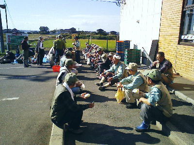 小型賞ハゼ6cmはジャンケンで同位で譲った息子と7歳児2人 発泡酒3ケース,酒4本,焼酎3,ワンカップ焼酎類15,ジュース類90,おしるこ,=飲物¥33.815 食事29.050,おでん¥15.000,菓子¥7.598,賞品¥8.500×3,写真¥4000,雑費 寄付は酒2,ビール1ケース,現金¥18.000 会費大人\200×38=¥7.600+寄付¥18000+町会出費¥120.000=145.600,残金¥8.982 陽差し強く11時半ビールなくなる,酒類,酒1,焼酎2,ジュース25,残。コンロ@2500×2購入,リール2個破損 役員は中島.駒田,戸倉,緒方,岩久保,本山,松村 台東区民新聞に記事が載る, 新年号に「例年区が行う「隅田川ハゼ釣り大会」に町会にイベントとして参加している台東四丁目町会「大橋良会長)は, 旧ろう2日の大会にも58名が参加してわきあいあい。役員らの活動開始は早朝5時スタート。釣場の確保やエサ お弁当,あれこれ。松村部長をはじめ駒田,戸倉さんの骨折りでスタンバイOK。風もなく穏やかな冬晴れに恵まれて, チビッ子も大人も大はしゃぎ。午前9時から蔵前橋脇のテラスで釣り糸をたれた。2時終了まで存分に楽しんだ釣果も,最高。 チビッ子の3〜4匹から太公望の78匹まで。おどろいたのは海の魚のはずのエイが釣れたこと。 強い引きに,ソレッと引き上げた先に57cmの大釣物が。これにはまわりの中から大歓声があがった。」と記載される。 又エイと集合記念写真が掲げられている。(2008年)平成20年1月1日発行 12月6日,EP5×400m¥5443,オモリ150@331,手袋@650,長靴@1350,購入 5日,ショウサイフグ大原,T100揚がり,72,62, 乗合船だが3人で各¥10000 9日,シュウサイフグ大原,ピンポンサイズで釣りにならず。鹿島はハマグリ祭の為休業,幡谷.早水氏 |