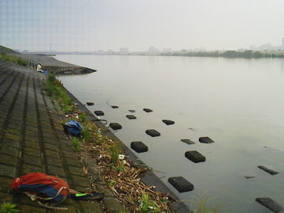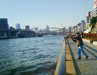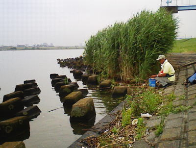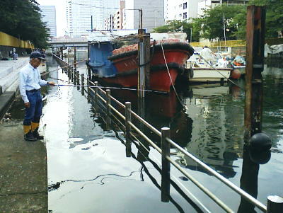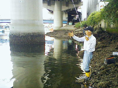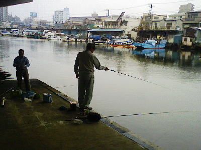 | 8月19日 | 鯊 | 天王洲運河.月島川.佃船溜り. 曇 中一小潮.満潮8:20. 駒田.松村 前回のアオイソメが残り.朝方近場へ遊びに行く。旧中川,荒川と意見は出るものの,駒田氏の押しを尊重し天王洲運河へ。 ハゼは食い悪く.その上修理したばかりのバイクはパンクと云う言葉を失う事態になった。 天王洲運河.左岸出合テラス タイヤの空気が抜け20分ロス。不安は的中した。私がキジを打つ間,駒田氏のアタリ0。エサを踊らすが見えぬハゼ。 水は茶色気味だが澄み,ヘチ一杯に被うもハゼの姿は見えなかった。 早々に移動する。Pは東京水産大学前にあり, 探索 高浜運河を北上し高浜橋を渡ると,両岸は水位がありそうだった。 夕凪橋より芝浦運河を渡る。やはり干潮で干潟を見付ける以外.ハゼのポイントは分からなかった。 1ケ所で充分車の停められる場所を認めるも.そこは倉庫群に囲まれた運河で水深がありそうだった。 月島川.西仲橋北 ![]() 7時月島川,既に多くの釣人が竿をだしている。前回のポイントで竿をだす。竹竿9尺袖7×2,ハリス6cm,オモリ0.5, 探る程アタリ9cmのハゼが姿を現した。水澄むも,ここでもやや茶ケ目。周りの竿が揚がる率は低かった。 ポツリポツリの釣りで数はやや出そうだが,今回は9時納竿の約束がある。 釣果のでる前に隣りの青年にハゼを譲り.久し振りの佃へ出向いてみた。 佃船溜り ![]() 8時過ぎ釣人いず.小潮の満潮でドン詰まり。岸まで水はあるものの,食いは悪かった。 モズモズのアタリは月島よりある。型は月島より一回り小さく8〜10cm。竿13尺,鳥ウキ3.オモリ0.5.袖7×2→4×1. 再びタイヤの空気抜ける(パンク)中,門前仲町から墨田川左岸沿いを蔵前へ。 途中.高速道小松線を潜る折,堅川出合のハゼを想い出す。今日のポイントだったかも知れないと。 |