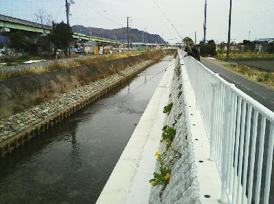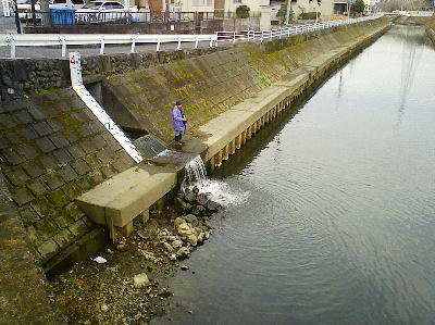 | 28日 | ヤマベ | 巴川→沼川. 晴後高曇 若波.浅草帽釣会試釣. 幡谷.坂森.斉藤.松村 28日当日.2班に別れフナとヤマベを試釣する。 フナは黒部上流(滑川)〜小堀川水路間で釣果は0。藤本,久郷,澤田,栗原, 阿玉川水門はビッシリ釣人並ぶが釣果は今一。 清水.巴川 本流二俣の左橋下7時,蟹打橋二股,右股は浅過ぎ釣りとならず。アイランド公園を抜け左股右岸より初竿する。 水深ありよさそうなポイントだがアタリ0。橋上で斉藤氏とヤマベ6cm型を見る。 右岸沿いに下流へ,上土橋との中程で15cmのハヤ混ざりで幾らか食いだした。水深は40cmと浅い。 竿15尺,道糸0.8,ウキ2,金袖3.5×2,赤虫, 右上は蟹打橋.上土橋よりH氏昨年12月のポイント 下流側より歩道橋右岸を吐き出し,歩道橋と過ぎるもアタリなし。水量は昨年12月よりやや低め,殆ど変わらず間々の澄み。 ヤマベが居るのか居ないのか? 前回のポイントで斉藤氏はアタリ1.,坂森氏は対岸(左岸)橋上で9時半まで0。 流す私にもアタリはなかった。 幡谷氏は2月例会に向け上野釣友会が初参加するとの事。川地図を作り克明に下り階段を記している。 蟹打橋.二股手前釣果0と聞き.早めに上流に戻る。神社前の浅場に走る良型ヤマベを暫し見る。釣るには技量がいるような走り方だった。 ゴミ取り用? ウキ玉棚の支えてある場所に戻りコマセを少々捲く。 12月とは違い浅場でのポイント,浅いアタリに混ざり引き込むヤマベ。2流しに1匹の確率でヤマベが舞っていた。 面白いほど掛かりだす。このペースの食いは今回私がトップだろう。10時半 コイに仕掛けを取られ.ウキ1+糸ウキ2,金袖3.5に替え,アタリのバランスを失う。 軽過ぎるオモリにアタリが取れず,又コマセ切れがヤマベを散らしたかも。再びウキ2,赤虫3.5に. 左股上流 下流二俣まで一直線.左は静清バイパス11時,奥の二股まで車で行き,川縁に下降する。(蟹打橋まで30分) 前回T.2をキープした黒須,久郷氏のポイントへ。右岸は上流までほぼ完全に護岸工事が完成。 左岸はまだ昔の間々の自然の土手が残されている。工事でコイは上流に押された模様。 堰下から新しい橋の間が最大のポイントとなる。川中央の窪地にヤマベが黒く群がる。 時折アタリあるも食いは浅い。群中央に投入しても散らぬヤマベ。それでいて掛かりは悪い。 水温か.水質か? 逃げず又食わず。何故か分からぬ疑問が残る。 幡谷氏が土の塊を投げ入れ,そこへ仕掛けを落すと一発で掛かった。バカを利用すれば良いかも。 その下にも大きな黒いヤマベの群があった。コマセを捲き一時食いだす。オモリを取りフカセ釣り 新橋は下流にも新橋があり,そこを下ると蟹打橋にでる。ヤマベはいる。小さな群も見た。 ただ食いは何処も悪かった。もしかしたら本流巴橋付近もいるのに食わないかも知れない。12時半納竿 3ケ月間の鵜の来襲で川魚は減少している。サギの襲来も凄いと。 特にマブナ.小ゴイ(20cm)は餌食の対象となり.減少する兆候は地元では揺るぎないものとなっていた。 沼津.沼川.回転鮨周辺 9号橋より下流を.13:50〜14:30藻が茂み自然を取り戻したよう思える。水の濁りもなく澄み過ぎていた。 左岸より竿をだすが4人でヤマベ1匹,斉藤氏のネリのみである。まだ巴川の方が分があった。長潮,4時〜18時帰宅, |