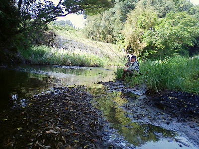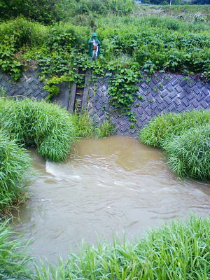 | ヤマベ | 萩間川と清水.巴川. 曇後晴.陽が戻ると共に蒸す暑さを感じた。 若波釣友会試釣.久郷,坪谷,坂森,松村 萩間川 この数年はいわき藤原川の釣行が続き.3年振りに萩間川を試釣をする。 水量は少ないながら釣行には差し支えなかった。ただヤマベの群はなく.走るヤマベを見留められず。 悪過ぎる水は床苔を腐り掛けだしている。田植え後の入水が,まだ留まっているように思えた。 川水が新たに一回りるれば良い筈である。 久保田橋脇より初竿する。竿15尺,シモリ,ソデ3,紅サシ, 右岸上流でヤマベの顔を見るのみ。 型は小さく9cm以下.6cm前後。久保田橋は水あるもヤマベの姿見ず。 石上橋は水位低く.下流の岩盤トロを流し1匹姿を見せたのみとなる。何処もアメンボーの波紋だけは多い。 右岸沿いに宮下橋に回った。 下流より宮下橋 この先は刈り取られ平凡な河原に上流側,左岸の河原は高い葦が刈り取られていた。私の隠れたポイントは失われていた。 酒屋前.木橋は撤去され深みは失いつつある。左岸から竿を冥一杯振り込むと心地よい引きと共に最後のヤマベを獲る。 高橋橋上.右岸吐出し この先が2004年6月のポイント.T氏高橋橋は釣りとならず。地元の人はコイとナマズ以外いないと言う。全員アタリなく0匹. 萩間川の下降を諦め.新たに清水巴川へ移動した。 巴川 1月に続き再び巴川を試釣する。それもヤマベ釣りで。 平塚.金目川はアユの投網,毛ハリ釣り多く.釣場が失われている。又狩野川もアユ釣りが解禁した。 土上橋より上流二股8時半.道に迷いながらも千代田土上にでる。水はあるものの濁りは強い。 何日か前,増水したようだ。ヘチテラスに葦や藻の真新しい付着が見られる。 二股から下流本流を酒屋付近まで探るがヤマベのアタリなし。坪谷氏が漸くボラを1匹釣り上げた。 奥二股左.立石橋 諦めの雑談で納竿.K,S.T各氏奥二股周辺は半年間で全てアスファルト道路に整備される。 巴市場より奥二股まで遡り.1時間程遊ぶもヤマベ2匹の釣果。 巴川も萩間川同様に来週の例会を引っ張って来る事はできなかった。10時半納竿=13時40分帰宅 釣れなかった試釣は直接本番を迎えずによかった反面.釣場を失う。伊豆青野川か,藤原川か? 遠方を嫌う会員が多く.再び藤原川になろう。 6月03日,釣り. 大北川,例年通り食いよく.15cm前後各一束を超え釣る。立ち込み。斉藤.藤本 07日,アユ釣り. 花園川,短竿とビンドウによるアミコマセ,3本針,オキアミ,. 山崎30,(共に6/1解禁.天然遡上多い) |