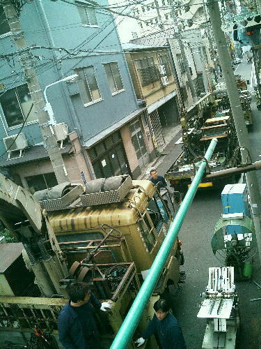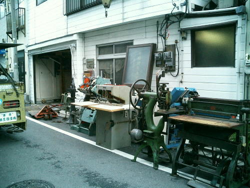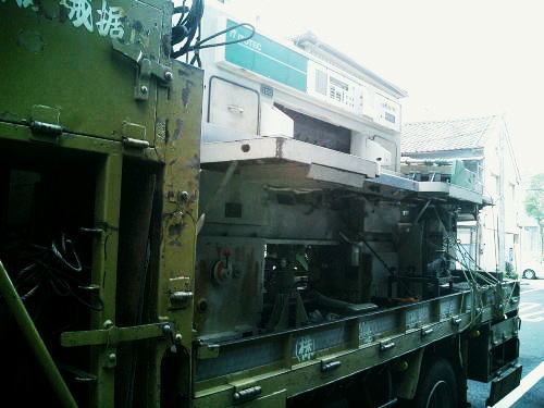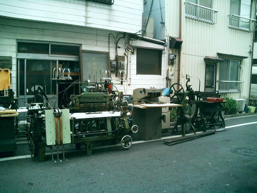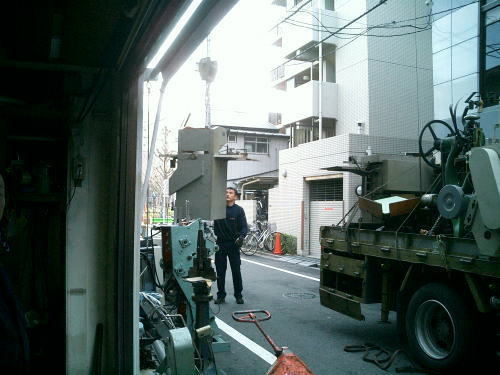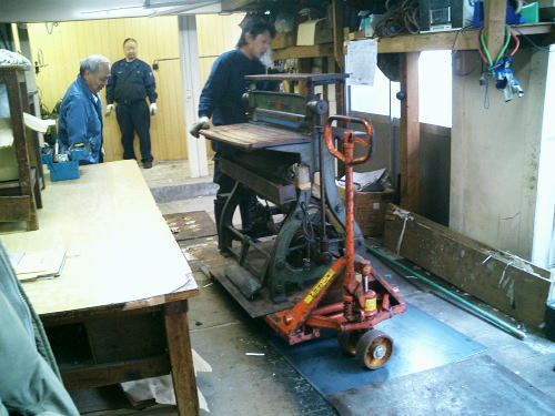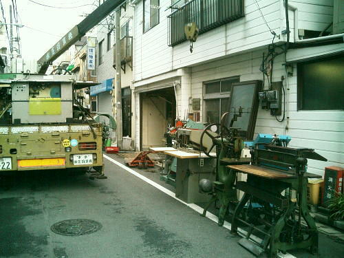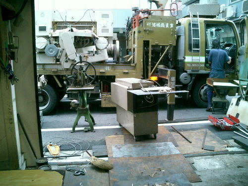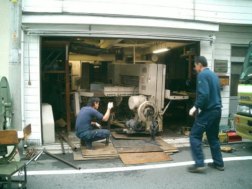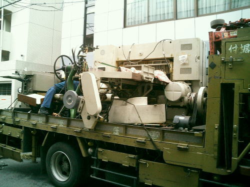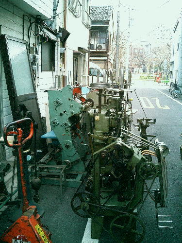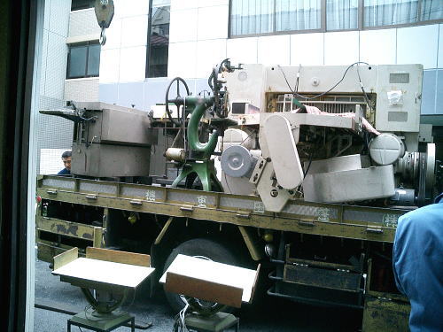 区道より外に搬出した製本機械