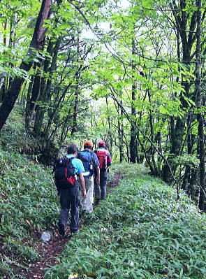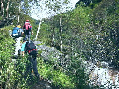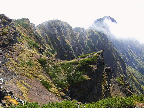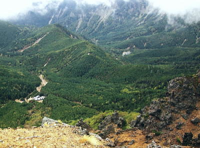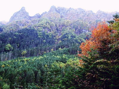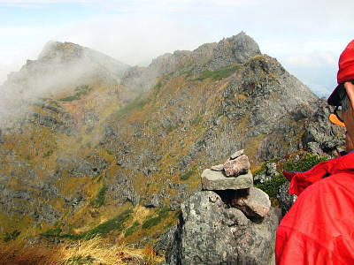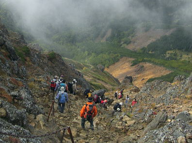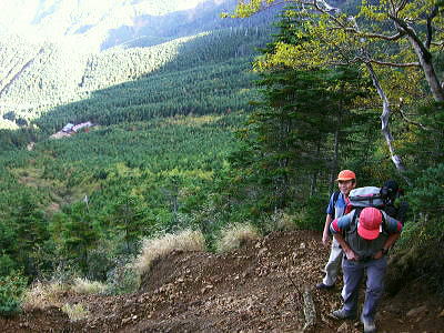 | 二期上の先輩達と再び八ヶ岳の頂稜に乗る 山の湯を訪ね赤岳・唐沢鉱泉を綴る・・赤岳から北上し横岳.硫黄岳.天狗岳. 2007年10月05~07日. m池田.見城.鈴木.松村 池田.田中.見城先輩達のグループは先月の涸沢山行を荒天で断念しる。誘われる間々.別行動で参加したのが同期の大川.鈴木と私。 改めて八ヶ岳山行を企画したいと連絡が入り.同期鈴木と穂高山行に続き参加する。鈴木とは今年4回目の山行。 美濃戸山荘から赤岳鉱泉に宿り.赤岳地蔵尾根を登り.2日目は夏沢鉱泉泊りで直接下山するとのこと。 余りにも単純過ぎる下山で.先輩グループと分かれ別行動を取ることにした。 鈴木と共に中山峠経由でゆっくり西側の尾根を回り込み.周辺の風景を愉しみながら唐沢鉱泉へ下る計画を立てる。 入山前日,田中先輩がトレーニング中に過労捻挫を起こし.参加不能に。残念ながらメンバーは4名に変わる。 又行程も変更し全員で赤岳鉱泉から赤岳を目指し.2日目は硫黄岳山荘泊りで.中山峠から唐沢鉱泉へ下ることにした。 美濃戸口―赤岳鉱泉―赤岳―硫黄岳山荘―天狗岳―唐沢鉱泉 10月05日.jr新宿=茅野=美濃戸口―赤岳鉱泉h 06日.h1―赤岳―横岳―硫黄岳山荘h 07日.h2―天狗岳―唐沢鉱泉=jr茅野=新宿 美濃戸から赤岳鉱泉―赤岳から北上し硫黄山荘 硫黄岳から天狗岳―中山峠から唐沢鉱泉 10月05日.晴 jr新宿8:00「あずさ21号」回数券特急指定往復¥8300.=10:17茅野:20.¥900.=11:10美濃戸口:20 一12:15美濃戸山荘:40一13:20堰堤:30一14:30赤岳鉱泉h1. 朝方新宿駅から見城先輩と鈴木に私が「あずさ21号」に飛び乗り.jr茅野駅でI先輩と合流し.赤岳を目指した。 池田先輩は6年前に茅野に移住している。山岳ガイドを職にし.NPO法人山の自然学クラブ指導員でもある。 日本山岳ガイド協会認定ガイド.その他肩書きは多い。2年前に日比谷で山岳写真展を開き.その折お会いして以来になる。 前夜降った雨も治まり.うららかな陽射しを浴びている。予定では美濃戸山荘まで先輩の奥さんの協力を得て,入山する予定でいた。 路線バスに変わり.茅野駅から立場川を渡り.迂回しながら原村・三井の森を経て.柳川沿いの美濃戸口に廻り込む。 この路線沿いには朝方.点々と地元岡谷南部高校のランナーが走っていた。バスは追い越せど現れるランナー達。 今日は原村まで強歩大会が行われている。又路肩のビニールハウスには既にシクラメンが鮮やかに花を咲かせ.収穫の時期を迎えていた。 柳川北沢沿いの小径にでて.11:54柳沢左俣 終点.美濃戸口からはジャリ道は二手に分かれ.右手は御小屋山尾根から阿弥陀岳へ。途中の御小屋山(御柱山)は最近知ったことだが 諏訪神社の御柱祭の御神木を伐りだす山らしい。左の砂利道から柳川を渡って角木場を過ぎれば美濃戸にでる。 林道を歩むこと1時間. 柳河左俣の北沢に入る。一昨年に南沢から赤岳へ向かった山道を右に分けている。 早いもので田中先輩の誘いを受け.立教学院八ヶ岳環境ボランティアに参加.その折は赤岳の清掃を担っている。 街道を清掃する幼い子供達に赤岳山頂の塵を見せたいと要望から山頂清掃登山に急遽変わり.焦ったのは私。 当時は何十年振りの山登りだった。登山靴を新調し南沢から入山し.業者小屋の手前でもうバテている。 腿に痙攣を起こし肉離れを起こしていた。それが赤岳.頂からの展望に酔い.再び山に登る切っ掛けにもなっていた。 今は確りした足取りに戻り,昔の山仲間達と共に.山に出掛けられるようなった。その切っ掛けを作ってくれたのが田中先輩だった。 今回参加できなかったことが非常に残念.昔に戻れぬものの.この歳で先輩に見て頂きたいほど山男に戻っていた? 道幅2mと狭い林道はジャリに変わるも綺麗に整備されていた。赤い屋根の発電小屋を右に見下ろすと堰堤広場にでる。 山側の道は増水時の避難道になっている。沢沿いに進むとK先輩が美味いと言う「くりだけ」を幾つも見付けていた。 出会った茸狩りの人に言わせると今年の茸は不作で少ないと嘆いていが。 路肩で拾う「きのこ」. 先輩はビニール袋に既に10房程持っていた。さすが群馬の山奥育ち。 堰堤から左岸に渡ると小道となり南沢のような広いゴーロ帯もなく.1時間ほどで横岳大同心・小同心を正面に見る赤岳鉱泉に着く。 沢沿いを右岸.左岸と移るり遡る.13:52赤岳鉱泉 連休2日前の館は意外に空いている。それでも個室を取り.3時を待ちで沸く一番風呂に飛び込む。 源泉は10度と温く待たされることこと15分. 薄暗い檜の板張りの小さい湯殿に風舟が又よかった。 玄関右奥に位置し.黒澄んだ板張りに裸電球。湯治湯とは異なる小さな山小屋の古きよさを抱かす湯だった。 湯殿は4人が入るには程好い大きさで動くこともできず満杯になる。脇の更衣棚に衣類を放り込み.浸かると勿体無い程の湯が溢れた。 初湯に仲間4人が2人ずつ.膝を丸めるよう体を縮め湯舟に浸かっている。安堵に溜息が漏れた。これもよい山の湯だった。 来館以来.焼酎を空け.風呂に入ればビールを呑み.晩飯の料理のステーキには赤ワインを注文