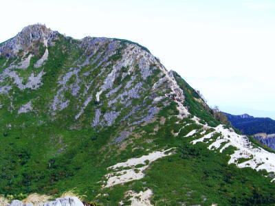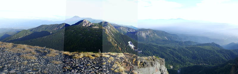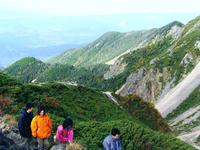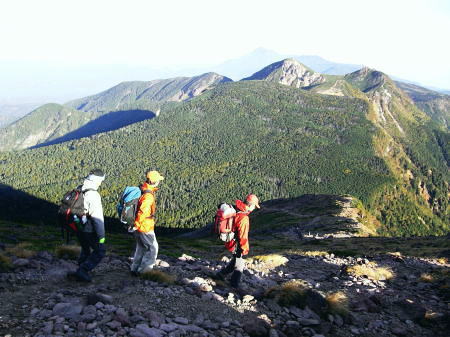 | 八ヶ岳赤岳から北上 微妙に崩れた天候から八ケ岳核心を抜け硫黄岳山荘に宿る。後半は快晴の硫黄岳.天狗岳を越え.北八風情に変わる中山峠から唐沢鉱泉へ下山 美濃戸から赤岳鉱泉―赤岳から北上し硫黄岳山荘 硫黄岳.天狗岳―中山峠から唐沢鉱泉・・jr茅野 夜半は硫黄岳山荘から満天の星空を仰ぎ.佐久の雲海から昇るご来光を見渡している。 雲上に現れた陽光は雲海に霞む山波に影絵の如く浮き出させ.横岳の大きな山肌をオレンジ色に染め夜明けを迎えた。 硫黄岳山頂 朝方頂に立ち.「硫黄岳山荘」の看板より奥秩父連峰.7:00三宝山.甲武信ヶ岳から国師岳と金峰山 10月07日快晴一時曇 硫黄山荘6:30一7:00硫黄岳:10一7:50夏沢峠9:05一8:40根石岳一9:15天狗岳:40一10:20中山峠 一10:35黒百合平11:00一11:40渋ノ湯への分岐:50一12:50唐沢鉱泉. 硫黄岳 地質学的にはよく分からぬが赤岳から北上すると痩せた岩稜が続き.昨日横岳の頂に立っている。 横岳の北面は丸味を帯びた緩やかな山肌に変わっていた。それは1つの岳かと思えぬほど南北に非対称的な岳を構成していた。 更に鞍部を越えた硫黄岳は広い台地状の頂で南東斜面の樹海には八ヶ岳特有の縞枯現象を起こさせている。 北東側には大爆裂火口があるものの.全体的には更に大きな曲線を描き.岳を大きく見せていた。 硫黄岳は八ヶ岳の中でも比較的新しい火山らしい。赤岳を始めとした急稜な南八ヶ岳と北横岳などのなだらかな森を持つ北八ヶ岳の間に 噴火活動が絶えず移動していたとのこと。南八ヶ岳の最後の噴火で硫黄岳は888年に硫黄岳の北側が地震に寄り崩れ. 稲子岳が東側にずり落ちるという地殻変動を起こしている。この時の岩屑流で生じたのが松原湖。 赤岳と阿弥陀岳 綴ってきた八.本峰群を背に.広大な平頂に覆われた火口台地に立つ.7:01三度目の硫黄岳 訪れたのは3度目になる硫黄岳.この広大な台地の頂に立つたのも.それぞれの因縁をも頂だった。 最初に登った硫黄岳は45年前の高校時代. 同級生4人が集い.奥武蔵伊豆ケ岳・武甲山に登り.夏休みを利用して無謀にも車山から蓼科山に立ち. 硫黄岳から八ヶ岳本峰を南下した。中央東線の小淵沢駅へ下りている。 日記を読むと前日は夏沢峠の駒草荘に宿り.元気よく硫黄岳に立ち.広い頂から赤岳の主峰を仰ぐ。早くも空腹感を感じ.横岳で昼食を摂る。 「腹が減ってしょうがない。体の調子がよい証拠でもある。」と青年小屋まで辿り.翌日下山した。勿論小屋泊り. 2度目はRHCに入部して2年目.夏季合宿は女子パーティに回され.妹と2人.行者小屋をベースに.今回のコースを歩み.硫黄岳から赤岳鉱泉に下りている。 この時は部室に残る天幕を使用してよいと先輩から許可を頂いたものの.8人天しか残されていたかった。 背負い出掛けるも.シュラフは娘が使い.私は広い天幕の片隅で.カッパを被り寝る始末。好天が続き助かった想いがある。 北八ヶ岳連峰を望む ![]() 右上に遥か遠く湯ノ内山.籠ノ登山.浅間山を望む 遠望 刻一刻と陽差しが昇り.その変化に合わせ岳を立体化させ.硫黄の頂からは南北に連ねる八ヶ岳のほぼ中央からの大パノラマが展望させた。 振り返ると荒々しい山肌を現わす岩峰の南八ケ岳.本峰の奥には南アルプスも遠望され.右へ回り込めば中央アルプスから木曽御岳.乗鞍と続く。 北方は手前の夏沢峠を隔て延びる北八ヶ岳の山並. 今までとは全く違う地層で緑の森が広がり.自然豊かな雄大さを山肌からも感じさせられていた。 西方遠方は前回登った穂高岳が霞んで望まれ.大きな窪みのキレットが認められる。そして槍の穂先からは更に後立へと綴られている。 根石岳と天狗岳西尾根.東天狗岳 更なる園方は北八を象徴する蓼科山.7:04冬季はカンジキの世界が広がる北八ケ岳の山々. 私の学生の時代はここで新人養成合宿が行われている。 又合宿の準備山行では双子池を訪れ.集中地に選んでもいた。積雪期に少なくとも正月を含め4度は通っている。 森と湖の大地に新雪を掻き分け.来る日もラッセルを繰り返しては膝上のトレースを築き.この峰々と湖を綴っていた。 右下に抉り落ちる夏沢峠・・硫黄岳からの下りで.7:10 夏沢峠から湯川側の尾根.7:56森林限界 大爆裂火口の断崖淵を下り瓦礫の径を下ると.岩稜帯と別れ夏沢峠より北八ヶ岳の森が待ち構えている。 夏沢峠が森林限界の境をなし.この先は北八と称した穏やかな森の世界を創っている。 峠の径を挟んで建つ山彦荘と夏沢ヒュッテ(駒草荘)は共に既に休業中でオーレン小屋に混雑が回ったようだ。今回は予約が遅く断られている。 根石岳 新人養成合宿で幾度となく歩んだ懐かしい根石への径.8:43新人養成V.W. 根石岳より振り返る南八 遠くなった硫黄の肩越えの赤岳.阿弥陀岳.中央は権現岳天狗岳西尾根末端を望む 西尾根末端にはこれから訪れる唐沢鉱泉がある.8:43西上州県境の山々と奥秩父 根石岳より.9:25御座山と右裏の両神山. 県境尾根を越え三宝山.甲武信ヶ岳. 離れて国師岳.金峰山 天狗岳山頂 阿弥陀岳御室尾根と硫黄岳峰の松目.9:29南アルプス.鳳凰三山と