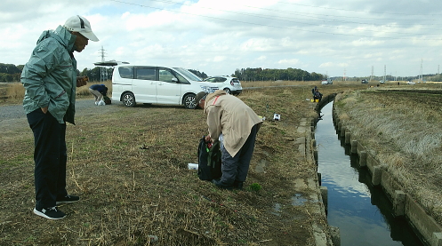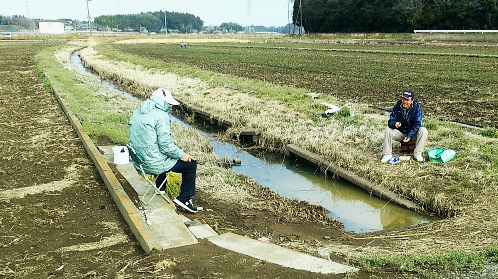 3月17日(水). 鮒釣り・・土浦・霞ヶ浦西浦の境川 快晴,気温は上昇,後半風がでる・・m山崎.坂口.松村 下流・・大きな建物の裏側が境川と新川の河口手前の釣人が坂口氏.一人越えた先が私の釣場で.後半は坂口氏の右隣に釣場を替えている。 6時.山崎氏とjr日暮里駅で常磐線に乗り換え.坂口氏と落合い6時50分土浦駅にでる。港町・土浦港・新川左岸沿いから西浦の湖畔を回り込み境川へ。 既にヘラ釣りとブラックバスを狙うルアーの釣人.数人と出会っている。帰宅時は新川の河口両岸にはヘラの釣師が多く陣取っていた。 境川左岸の前回の1つ先のヘラ台から8時竿をだす。前日の降雨で濁りが強い。前回と同じ高橋氏のウキを使用。 三間竿.糸1.5のウキ釣り.ヨリモドシの先はハリス1.長さは20cmと30cm.フナ専用2本針6.バカは30cmほど。ネリは凄ゲレとアルファー21, ひび割れが見られ,ズーム竿に変えている。投入のさえネリが途中で落ち.グルテン1を加え.バカを取っている。漸く釣りに専念できたのは大分時間を費やしていた。 アタリがでて引き込んだのが10時を回っていた。コイかと思える引きで回り込みフナと知る。場を荒らさぬよう浮き上がらせてから少し遊ぶ。 30cmぎりぎりの尺ブナがタモに入る。その後はアタリらしきさは一度しか分らず。足元では葦でフナの産卵が始まった。跳ね上げる大ブナは40cm近い。 ネリの付け方が悪いのかトラブルが続く。何故か昨年と違った動作か? 釣りにならず。そして釣れていると坂口氏に誘われ移動した。 上流側・・山崎氏.10時過ぎ釣り人多くなるが数は知れていた釣場を移り.10時過ぎ3投目でフナが引き込む。前回より重い尺ブナだがすんなり上り.流れとの境目でアタッている。その後もネリに悩む。 それを見た坂口氏から指導を受ける。ネリの大きさはパチンコ玉以下で綺麗に丸めて作ること。山崎氏からは針を押し込んで根元を固めれば更によい。 昨年教わった筈だが忘れ.大き過ぎ重みで落ちると改めて悟らされた。又見ずらくなったらウキを替えること。 後半はやや風に煽られ13時半に納竿。尺フナ2枚. 山崎氏7枚・坂口氏はそれ以上か? 工場に寄り帰宅16時20分・・前日は朝方5時に.土浦市を震源とする震度4が起きている。左足の指先に不安あり. 3/21・・境川・新川中流,大ブナでる,若波釣友会 3/31・・境川.2本目の橋手前までの釣場は釣果0. 水深の浅い上流側で釣果でる。 |