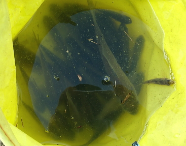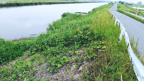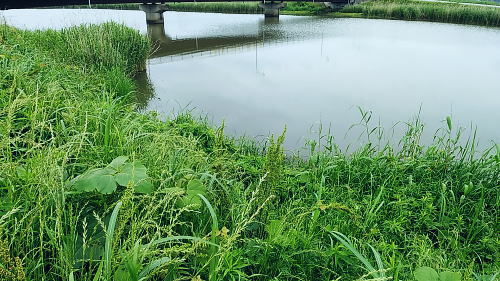 | 5月20日(木)曇. 大タナ釣り・・霞ヶ浦西浦.新利根川 神田親釣会13名 初めての大タナ釣り. 再び神田親釣会に参加. 首都圏中央連絡自動車道を稲敷ICで降り.県道108号線に入ると直ぐ新利根川の新橋にでる。 右岸沿いに東進して.自動車道潜った所から2本目の県道107号線の橋前の機場までが釣場になる。 平須橋.右岸橋下の山崎氏.9:30私の釣場は右端枠外の葦に囲まれた藪絡みの窪み.足場を固め釣場を作る 山崎・三橋氏との間の茂みに入る仕掛けは山崎氏作.7尺ヤマベ竿.道糸0.6.ヤマベウキ,アキタツクネ1.ハリス0.3.オモリはできるだけ軽く。赤虫とグルテン5. 水深60cm.前日の降雨で濁りは強い。ウキは川底から10〜15cmタナをタナに取り.8時過ぎ竿をだす。一投目からアタリ3cmほどの大タナが手に乗っている。 2投目.3投目と連続し小さいわりにアタリは明瞭..気をよくした途端,強引に引き.竿に糸絡みして.大分時間をロスしている。 真上でなく若干横気味に引くのがポイント。強い引きでつい強めに引いてしまった。コマセを撒きその後はコンスタントにアタリを味わっている。 時にタナゴとは思えぬ10cmの大型を掛けていた。 赤虫は中央をチョン掛け.それが又難しい。丁寧に付けねば食いは悪い。サングラスを掛け老眼鏡で刺す。手間が掛り能率は悪い。 赤虫も水の中に入れ.1匹ずつ直ぐ取れるよう餌箱の工夫が必要だった。食いが悪くなればウキを踊られ.止めれば掛る。 常に誘うことを怠らず。又ボートの波立でも食いの変化がでている。 やや遠方はクチボソが多く.時折ブルーギルの稚魚に17cmも掛ける。手前ではモロッコがでた。それにしても釣場としてはよいポイントだった。 ただ9時20分.1.5mほどの枝絡みの塊りが私のポイントに流れ込む。幅広い川の流れの中.この狭い釣場を狙い.動かずに留まり続けている。 長竿で押し返せば直ぐ離れる浮遊物。それが離れず.竿を出せずにいた。 移動せねばならなくなり.対岸の橋下に平坦な川縁が眺められ.そこへの移動を試みている。 手前の窪みが三橋氏の常連の釣場らしい.9:48慣れた手探りで釣果を延ばしている。時折ニゴイを釣り上げ怒声を吐いていた。移動する頃になると食いが落ちたようだ。 後に赤虫を忘れ.ネリ1本で通したと。ネリの場合は小ブナ釣りと同様に.針に摺付けるよう切り付ける。赤虫を付けてもよい。 今回は移動に時間が掛かり試すチャンスを失っている。 対岸の橋脇では測量点標石を設置中.10:00ほぼ2kmの間隔にある橋全部に設置される。狭いコンクリート縁のカーブ地点の橋ぎりぎりに設置された。 全て設置されればGPSを利用して.北利根川の正確な地図が作成されるのだろう。 対岸の橋小広い橋下の平坦地は湿原化していた。以前は先端まで桟橋があった模様。途切れている。又右脇の湿原のヘチ沿いにもあったがそれも途切れていた。 対岸左側のガードレールの切れ目が三橋氏.橋脇の窪にが私が竿を出した釣場.その間の葦が高く延びる高みが次に選んだ釣場。 移動し戻った釣場.10:22橋上から右岸沿いでヘチ脇まで降りられそうな場所を探すも覆い被され深い下草に閉ざさ.突き出した枝木の下は空間なのがよく見られる。 右手の目ぼしい所まで行くも.危険で諦めている。如何にか竿を出せる場所は私の居た釣場と三橋氏との間。声を掛け許可を頂くも.藪絡みで無理と。 山ではないがガードレールの途切れから入るも,足元の先が読めず.再び上がって目指す釣場へ直下る。空身で偵察,足場を造り.ザックの置場を設ける。 ビクは大タナが外来種であることから.狭い足元に置くことにした。一歩間違えれば落ちる高み.三方は下草の壁ができている。 斜めに踏み固めた足場はやや不安定で立ったまま釣ることになる。 三橋氏が釣れぬと零す中.入れ掛かりになる。水深は漸くウキが如何にか立つほど浅い。ちょこっと動かすと小さな小さな大タナが食う。 ビクに入れるのが面倒で.投げては処理と餌取とを連鎖させている。赤虫1匹で2匹・3匹と。左手に掴んでいたタナゴが落ちれば諦めてもいた。 このまま釣り続けられるよう.マセを早めに撒いたのが悪かった。途端,食いは悪くなる。 その上道糸が切れた。強引に投げたわけではないがウキだけが残され.天上に道糸は結ばれていたが又オモリ下も道糸もなくなっている。 2時までで1時半に納竿するには20分ほどしかなかった。替えた仕掛けは袖2.5が付けられている。無視して投げると今日最長の大タナ10cm2匹目が掛り. 更に弧を描くブルーギルの大型が掛かる。そして大タナの稚魚をヒレに掛け納竿した。 飲料水を忘れ熱中症気味.道の駅にでてホッとする.13:341位158匹.1位高地143匹.3位137匹・・6位松村97匹.7位山崎96匹 メダカ 7月中旬にメダカの大量死が起きる。メダカを飼育し始めてから20年近くなり.初めての経験。45年ほど前にタナゴを飼育して以来になる。 原因は産卵の時期を迎え餌のやり過ぎのようだ。5年ほどの周期でほどほどに生命の維持を繰り返していた。それが不注意から大量死を生んでいる。 少し遅すぎ