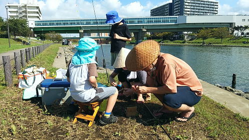 | 09月23日(木).快晴 ハゼ釣り.旧中川右岸大島口 大潮満潮6:25.干潮12:24.末っ子家族と 中川大橋上流側脇のカヌー発着所付近橋梁上にある都営新宿線.東大島駅・・大島側 ![]() ![]() 18日に台風14号が温帯低気圧に変わり東京を直撃し太平洋に横断している。翌日は水門が放流,20日は真水が入り.23日に延期する。 当日は久し振りの夏日を迎え31.7℃を記録.久振りの猛暑に。強い陽射しに恵まれ? 河原の照り付けは強し。マイカー. 竿9尺,道糸08〜1.0,針ソデ4.ハリス0.8.ウキ釣りでオモリ1.0。ウキは目印に見易く5〜6個と贅沢に.餌はアオイソメ・・浅草釣具.餌250g.¥500× 9時20分.ゴロ石先の柵越え水深75cmで初竿する。濁り強く流れは弱いが思いの外アタリは乏しい。ちらほち釣人が見られるも.同じ状況が続いている。 ハゼは9cm前後でダボが以外と多い。少し沖めのカゲアガリで.食いだすも.間は空いている。それでも竿数でホツリホツリ釣れだしていた。 弱いながら流れがで始めて竿12尺に変え直ぐアタリがでるも.細かい藻がエサとは云わずオモリ,道糸にも絡み.食いしびれている。 オモリが底に着き食うもいっときで藻が絡む。 釣人が増し並ぶよう竿を出すが誰もが同じような状況に陥っていた。竿9尺に戻すもヘチでも同じように流れ込んだ藻に覆われ,釣りずらくなる。 丁寧に藻を取らねばならなかった。運がよく藻が切れるとアタリがでる始末。竿数で漸く誰かに掛かるようなるが釣果は知れていた。 成長したのが一君,来年1年生になる将ちゃんも自ら1匹を釣り上げた。私は餌付けに.仕掛けが絡めば直し.その間竿を交換し.釣る間は途切れ途切れに。 11時半納竿. 20日に予定されていた公園主催のハゼ釣り大会はコロナの影響で中止された。 |