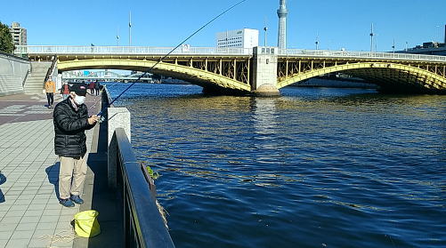 | 11月28日(火).快晴 第29回墨田川ハゼ釣り大会と水辺観察 小潮.干潮4:52.満潮12:07.駒田.松村 今年の東京は天候不順で7月を過ぎると猛暑は治まり.一日の温度差が激しい日が続き.ハゼの湧きも今一つ。 その上昨日に続き今日も.今年の最低気温を記録した。最高14.5℃・最低4℃. 厩橋の右岸下流側より・・12:30納竿区からの初めて個人に直接.釣り大会の招待ハガキ(228)が届く。出向くが「ハゼはいない」との会話はその通りになってしまった。 都排水処理場下流側.厩橋脇の左岸テラスを釣場にし.幼馴染と各々投げ竿2本.仕掛けはオモリ20号・2本針7〜8.アオイソメ 遠投・中半・真近と探るも餌はそのまま残され.2本針に一匹を掛けるも.もう一つの針は餌がそのままの姿で残される。 直ぐ傍の釣り人は時間足らずで過ぎ去っている。川辺に釣人を見る姿さえなくなっていた。 肝心のハゼは数えるほどもない。川畔で朝から日差しだけは恵まれていた。又西風は建物に遮られ日向ぼっこに専念する。厚着でポカポカの陽気だった。 11/18日. 神田親釣会の木更津ハゼ釣りは太公望には虚しい釣果になる。いるのかいないのか反応のない大会になったらしい。 |
