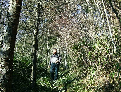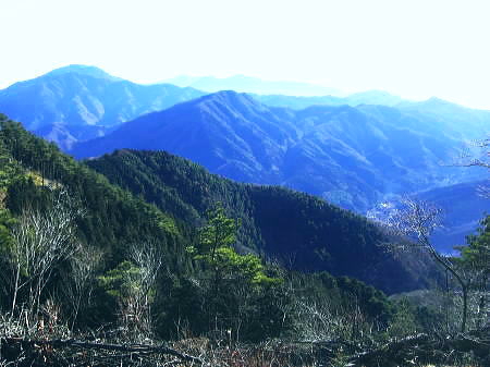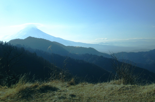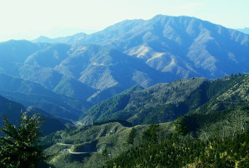 | 道志山地は山梨県南東部に広がる山域で.桂川を隔てた西側に御坂山地が.南側には丹沢山塊とに隔てられている。 1700m〜1000m前後の山並が群がる山域は広大な森林と豊富な保水力を持ち.道志川.相模川などは神奈川県の水源林地域に指定されている。 西道志 西道志は桂川の支流朝日川と秋山川とで南北に隔てる市界尾根(都留市・道志村)の西側の桂川右岸流域までの山域で. 道志山地最高峰の御正体山が聳えている。桂川の対岸は御坂山地に変わり.南西端の鹿留山の境が富士の裾野に。 道志 市界尾根の東側の主稜の秋山川沿いに位置している。旧秋山村周辺を含めた山域を指し.西北端山稜とに分けられる。 東端は相模原市に掛かり南側は道志川を隔てた丹沢山塊。 前道志 小仏トンネルを潜り相模川が近ずくとjr中央東線沿いは桂川と川名を変え.大月付近からは桂川は北上して.源流は山中湖。 その高みに1000mに満たない山々が連なっている。個性的な魅力を持つ低山が揃い.大月市街まで続き前道志と呼ばれていた。 四季に合わせて装いを凝らし.主峰の正体山・今倉山。赤鞍ケ岳といった道志の主稜の前衛を務め.前道志の山々の総称とされている。 西道志の主稜・・御正体山周辺 林道菅野線及び菅野盛里線の既線と予定線 2008年12月. 道坂峠から御正体山ヤラ尾根―山中湖から甲相三国峠.三国山稜を経て籠坂峠・・4つの峠路 御正体山の南西支稜 2012年12月. 細野からハガケ山大沢右岸尾根―北上し文台山から尾崎山・・富士急東桂 ハガネ周辺古地図 忍野を囲む山稜 2010年04月. 鹿留山北尾根の巨樹群と杓子山の富士大展望一不動湯から下吉田駅 周辺の林道 今倉山稜1410m峰北尾根 2011年07月. 「芭蕉月待ちの湯」から1410m峰北尾根の右支尾根を経て.今倉山西峰北尾根を下り猿焼山に至る・・周回 2017年06月. 1410m峰北尾根の左支尾根から道志二十六夜山西尾根・・引野田から富士急赤坂 2016年11月. 日陰舟北東尾根から岩戸ノ峰―ブドウ岩ノ頭から菜畑山.水喰ノ頭.御座入山・長スラ尾根を下降.大旅沢より県道,馬場入口 2017年04月. 釣場bsから御牧戸山北尾根から大タギレを経て金波美峠―阿夫利山から金剛山北東尾根を経て富岡,奥牧野bs 中道志 2013年09月. jr大月駅南面の尾根―菊花山から九鬼山東尾根を経て871m圏北尾根・・幡野入口bs 2013年04月.jr鳥沢から高畑山を越え.高岩からサイマル山―猿焼山北尾根から西尾根玉川天神峠・・富士急赤坂 2013年03月. jr鳥沢から棚ノ入山北尾根―秋山二十六夜山登り返し.寺下峠から727m圏コブ北尾根・・jr梁川 前道志・・西北端山稜・・大桑山北面の尾根 2013年09月. 九鬼山北尾根末端の菊花山から東尾根―871m圏コブから871m圏コブ北尾根に移り朝日小沢へ・・jr大月から周回 2013年03月. jr猿橋から前道志北面の尾根を綴る・・鈴ケ尾山北西尾根から大桑山北尾根・・jr鳥沢 2016年01月. 猿橋城山を経て幡野神社―大桑山北西尾根から北東尾根を下降・・県道513号を経て」jr鳥沢 2012年03月. jr梁川から前道志北面の尾根を周回・・最短の矢平山北西尾根から残雪残る倉岳山北東尾根・・大月市秀麗冨岳一二景表 前道志・・東端(旧秋山村の東端) 2017年04月. 釣場bsから御牧戸山北尾根から大タギレを経て金波美峠―阿夫利山から金剛山北東尾根を経て富岡.奥牧野bs 2017年02月. 落合から高柄山中尾根―北尾根から杖穴を経て里道を綴り.久保からjr四方津 2019年04月. 落合から新矢ノ根峠東尾根―鶴島御前山・栃穴御前山から牧野を経てjr四方津 2019年05月. 田野入林道・新矢ノ根峠高柄山―大丸・矢平山・丸ツヅク山・727m点コブ北尾根・鳥屋山北尾根からjr梁川 2017年04月. 奥牧野から平野峠にでて綱子川両岸尾根を周回―舟久保.十一面観音から林道.県道を綴りjr藤野 山中湖周辺の山々・・西丹沢西端 中央東線沿線の案内板・梁川駅から笹子駅間.駅.街道 ・甲府盆地周辺フォッサ・マグナ概念図 ・・富士山撮影山行Top 三国山を繋ぐ甲斐・駿河の3つの境界尾根・・御正体山ヤラ尾根・甲相尾根・三国山稜 4つの峠路・・道坂峠.山伏峠.三国峠.籠坂峠 西道志の道坂峠から御正体山ヤラ尾根を越え.山伏峠から湖畔平野。翌日は鉄砲木ノ頭に立ち.三国峠を経て三国山稜の籠坂峠へ至る。 2008年12月29〜30日.L松村m長塩 12.29.道坂峠.御正体山ヤラ尾根越え・・265号鉄塔からの展望と山中湖「わかさぎ屋」 12.30.カヤトのパノラマ台から三国山稜と籠坂峠 昨年に続く今年の忘年会山行に幼馴染Nの希望を叶え.富嶽の見える山での1泊山行を企画した。彼はよき山小屋がなければ再び三ッ峠へとも。 昨年は43年振りに登った三ッ峠。今回もカメラを持ち.道志から山中湖湖畔にでる富嶽撮影山行に出向く。 先週は甲州百蔵山の山頂から強い陽射しを浴びながら,逆光の富士を遠望した。冬至なのに暑く肌着で登っていた初めての体験だった。 富士の裾野には前衛に御正体山・鹿留山・三ッ峠山が大きな山容を構え.その1つの御正体山の頂に立つ。 道坂峠・御正体山・山伏峠を結ぶ山並は道志山地の南西端側に位置する主尾根にあり.道坂峠から御正体山まで